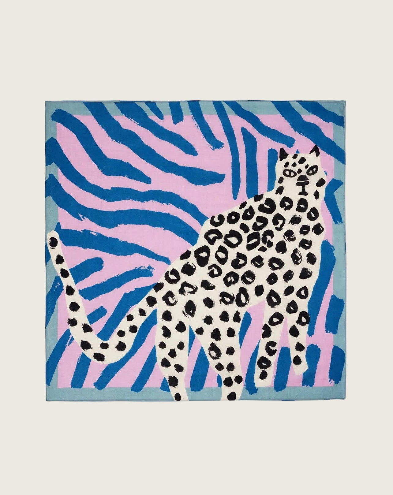 Carré Imprimé Léopard - Rose Loukoum/Bleu Canoe