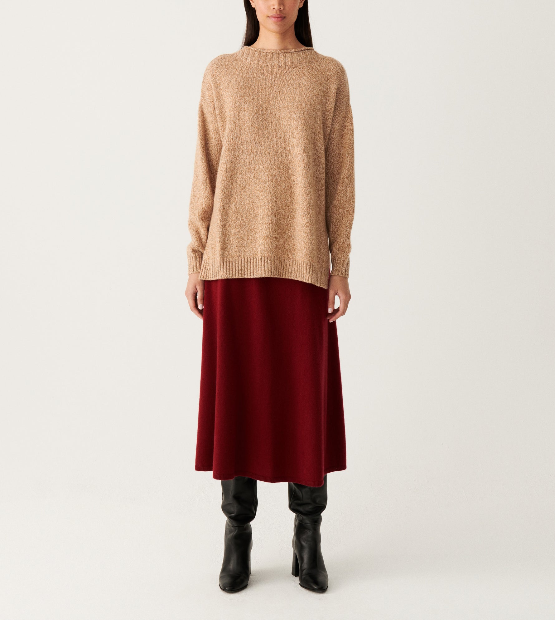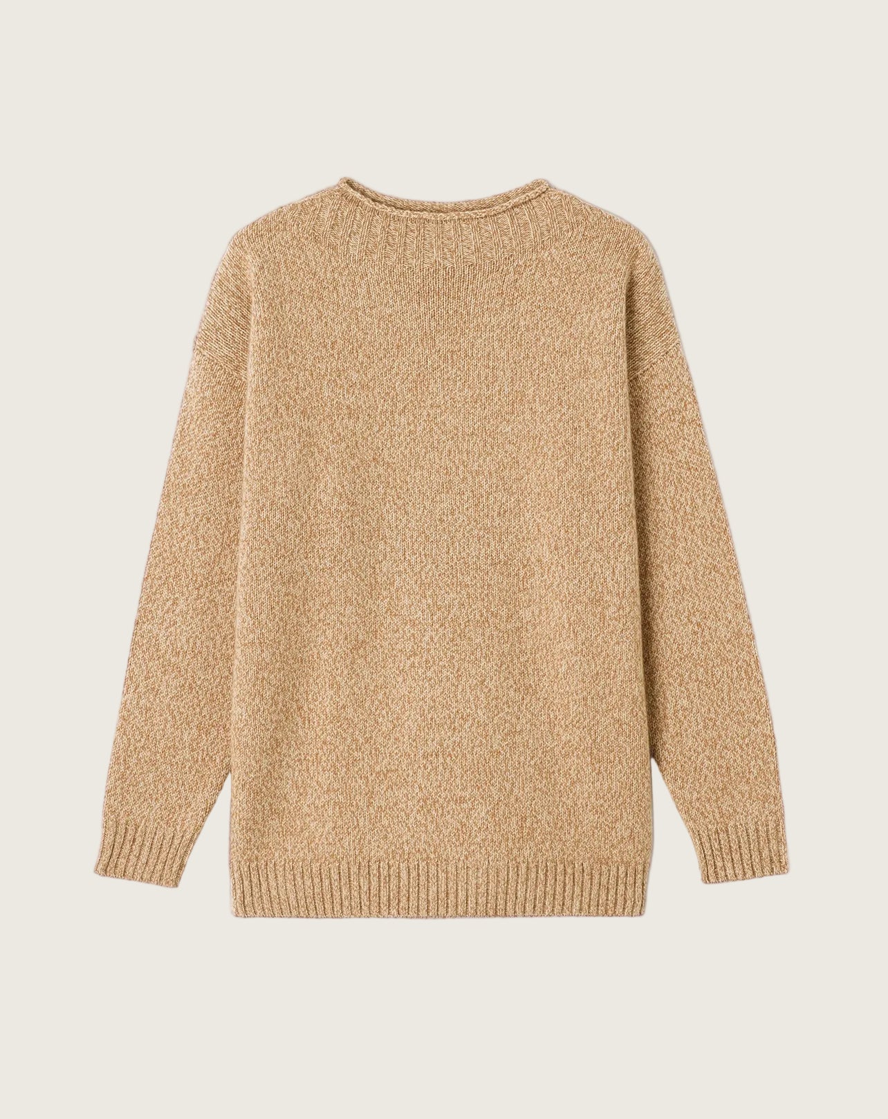 Réalisé en 100% cachemire, ce pull ras de cou séduit par sa ligne enveloppante oversize. Sa teinte moulinée est obtenue en mélangeant 3 fils de couleur différente lors du tricotage.