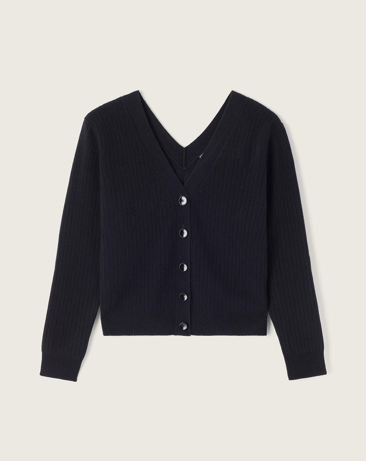 Ce gilet Eric Bompard est entièrement tricoté en côtes plates ce qui lui offre un délicieux tombé, dense et structuré. Très féminin, son double décolleté V dévoile aussi bien la poitrine que le dos.