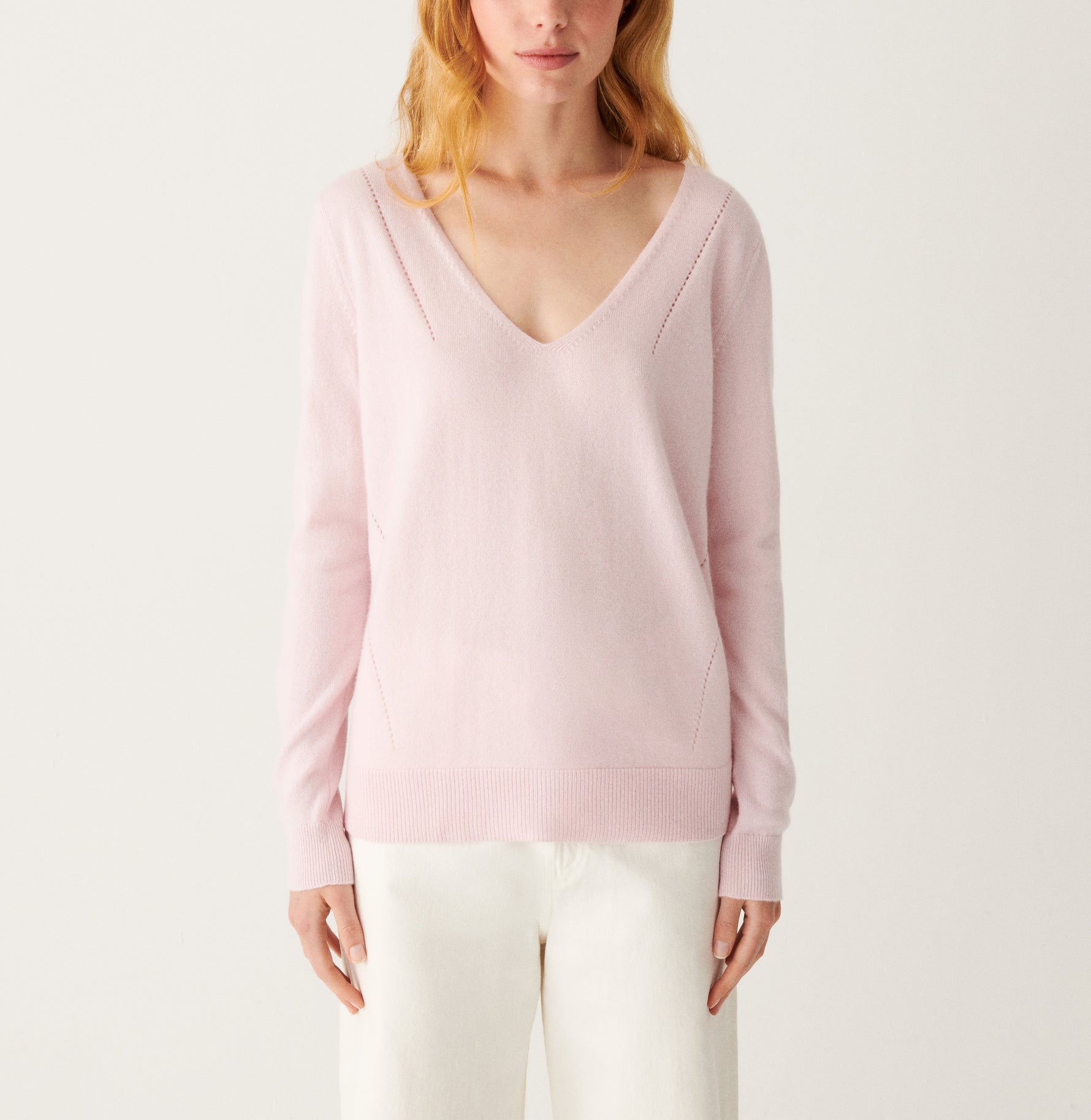 Pull V ample col à même lignes pointelle