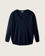 Le maxi pull V Eric Bompard est la version loose et mode du pull V classique.