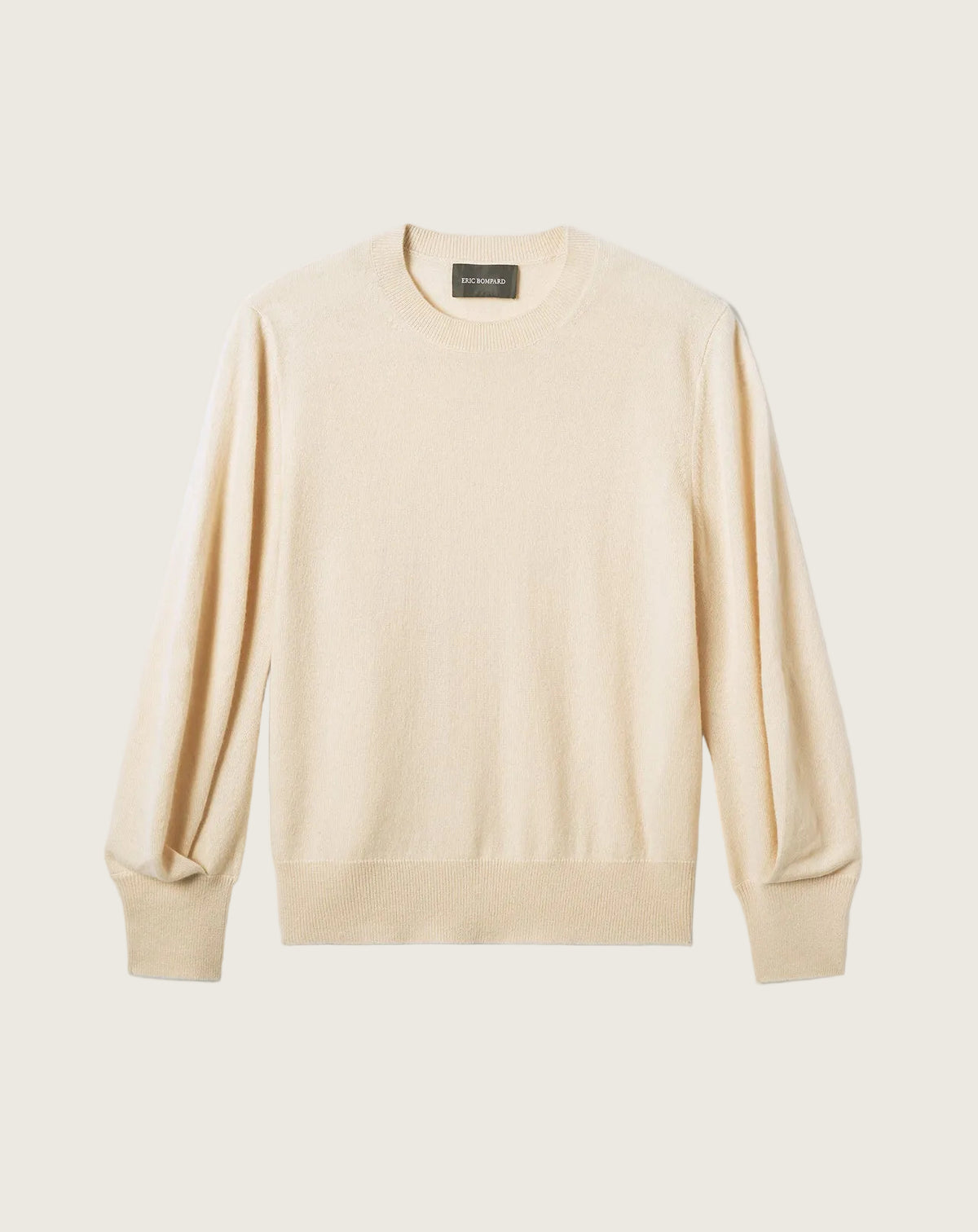 Ce ras de cou 100% cachemire dévoile le savoir-faire de la Maison : un travail de pli au poignet permet de donner un volume fluide et naturel aux manches. Pour une silhouette originale et contemporaine.