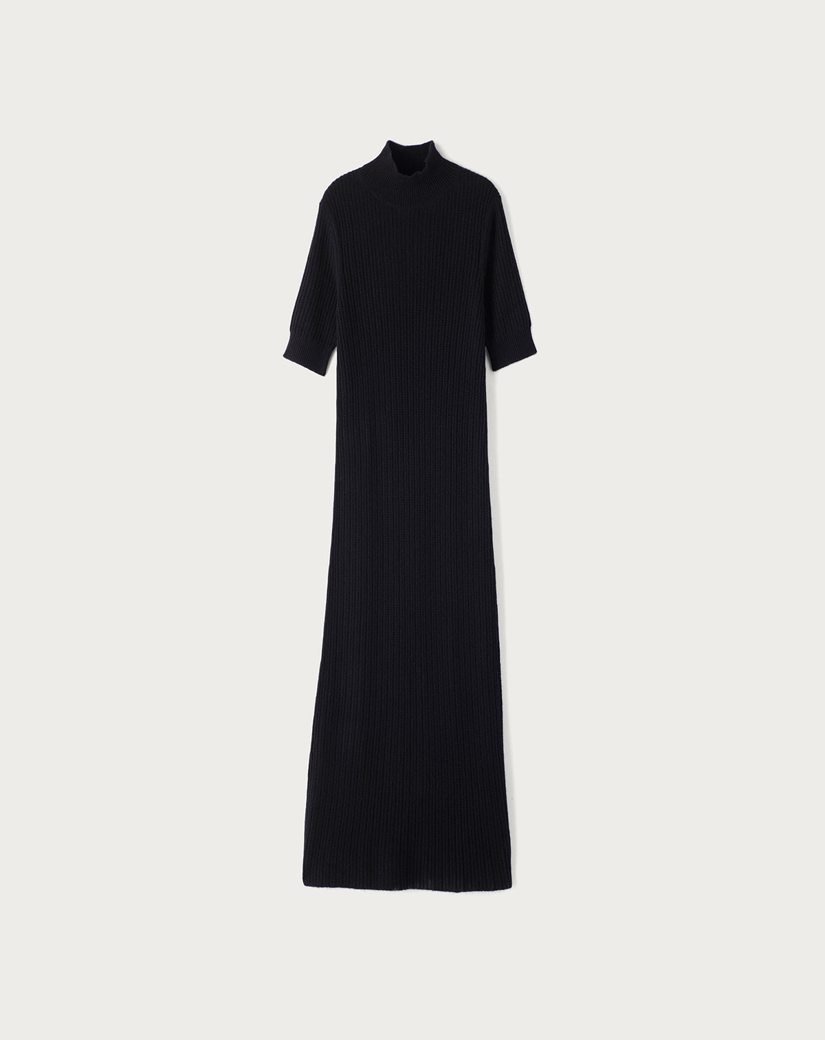 Cette robe seconde peau au charme bohème déploie un jeu de côtes tout en délicatesse. Sa coupe légèrement évasée associée à un col montant élance la silhouette.
