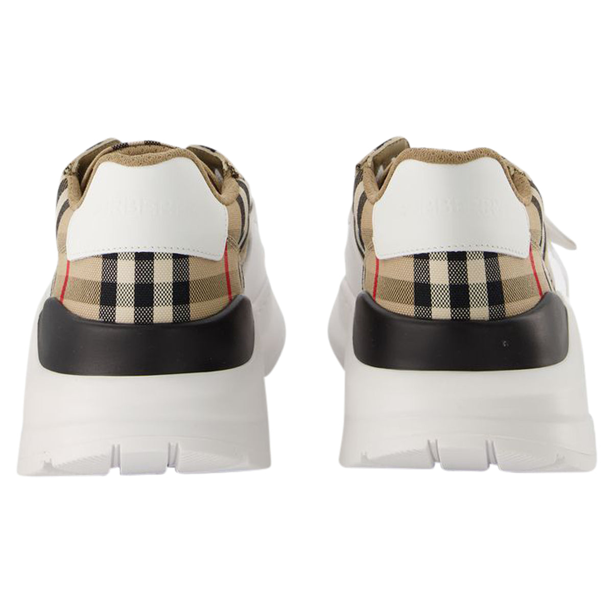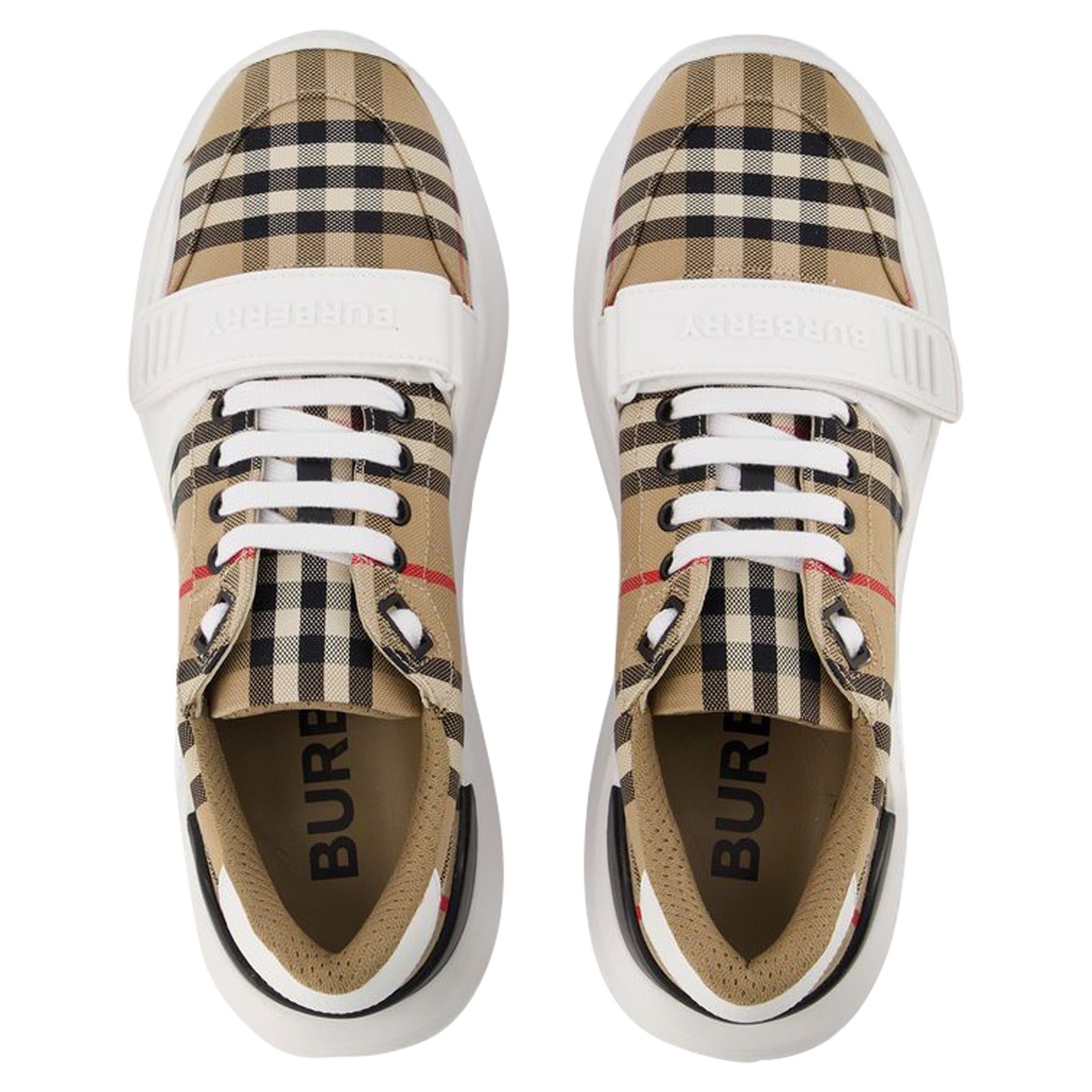 Légères, sportives et résolument chics, ces baskets Burberry insufflent un dynamisme urbain authentique. Elles rehausseront une robe beige unie ou un ensemble t-shirt et short cycliste grâce à leur motif à carreaux Burberry. Couleur : Beige - Archive Beige Ip Chk. Matière principale : Coton. Semelle : Caoutchouc. Doublure : Cuir. Fermeture : Lacets. Forme du bout : Amande. Pointure : Taille normale - Pointures européennes.