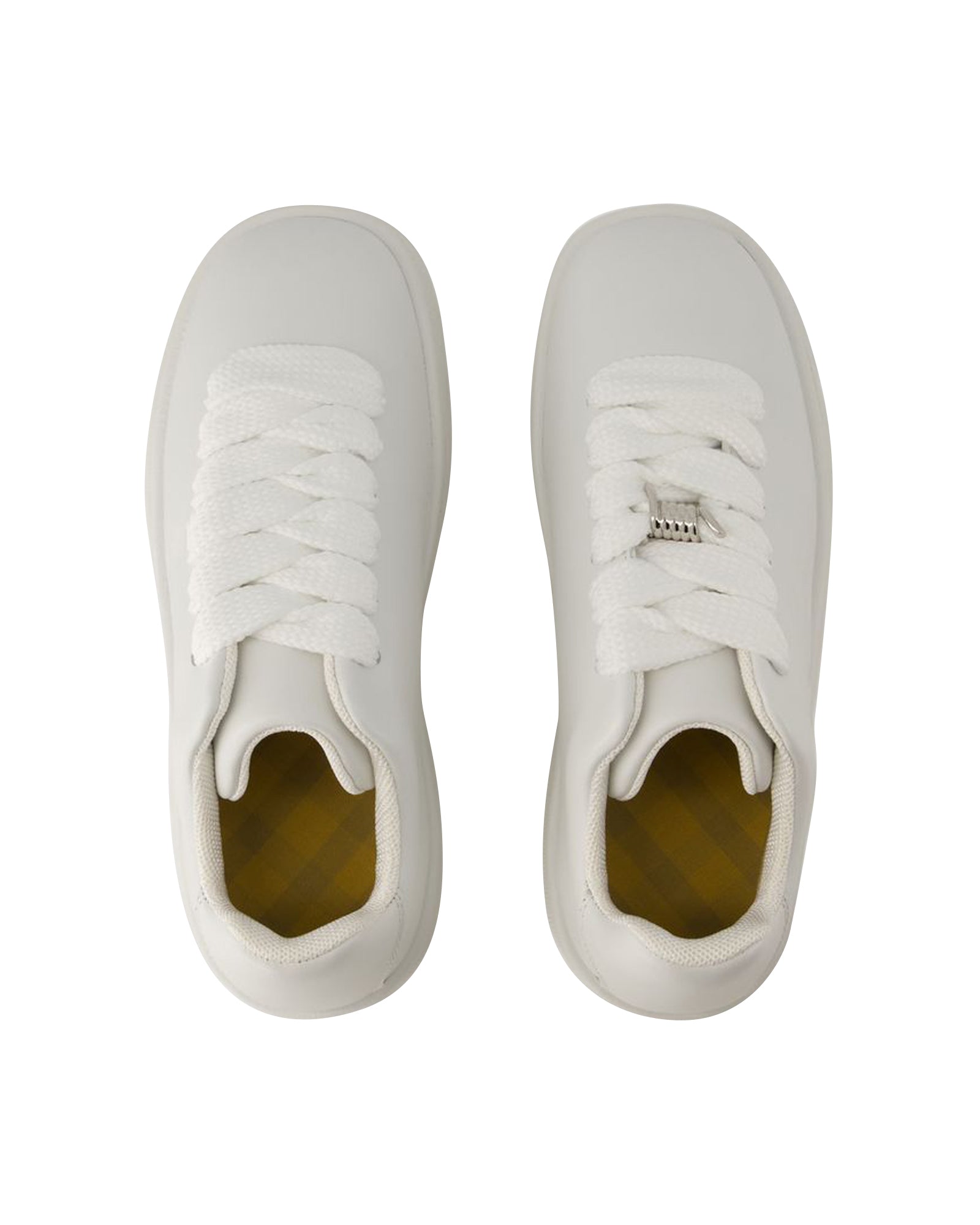 Couleur : blanc. Matière : cuir de veau texturé. Semelle : caoutchouc. Doublure : cuir. Fermeture : lacets. Bout : rond. Pointure : conforme à la taille européenne.