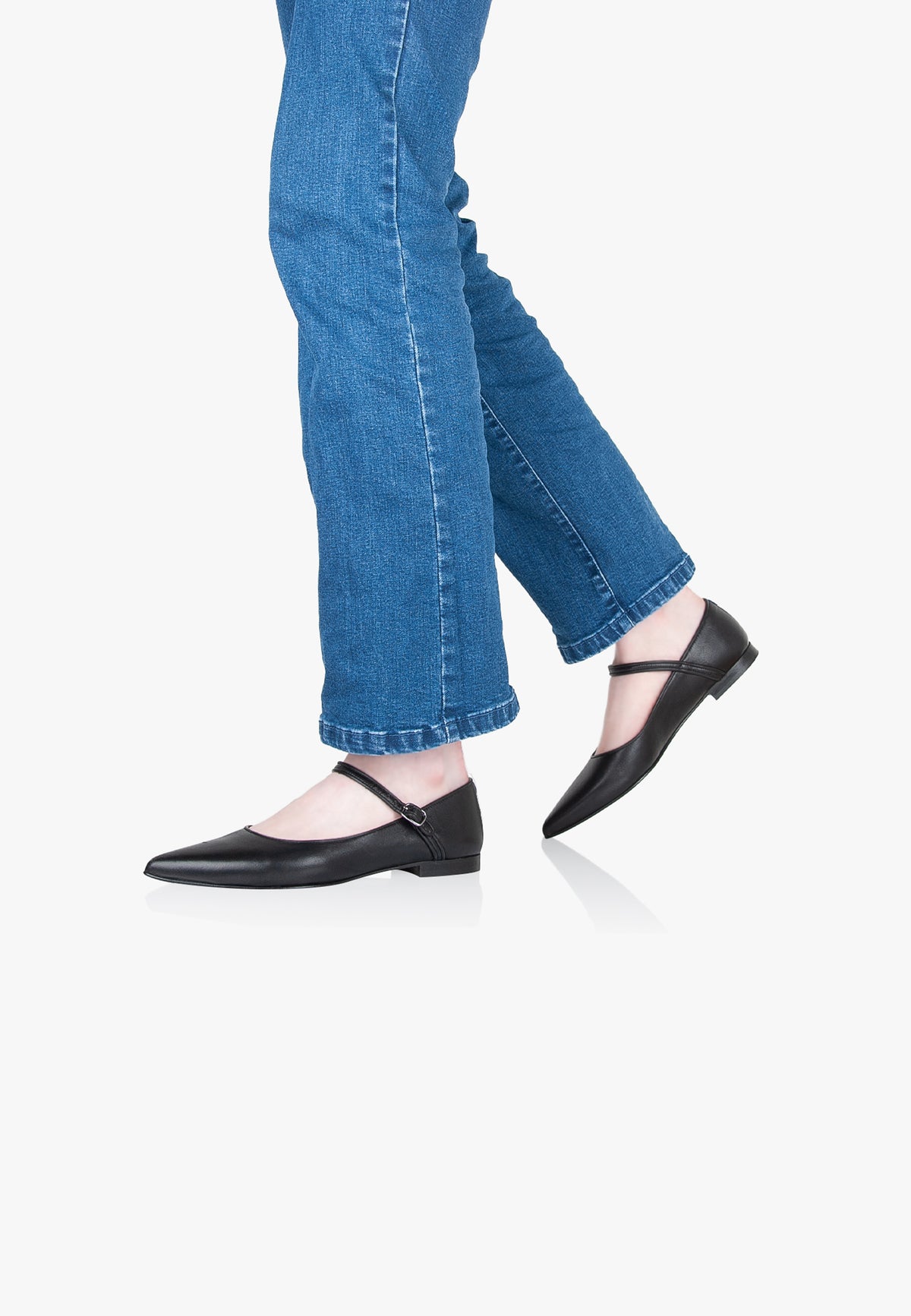 Slippers Mary Janes Pointus - Cuir - Noir - Femme
