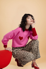 Pull Côme rose cœurs rouges