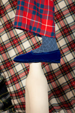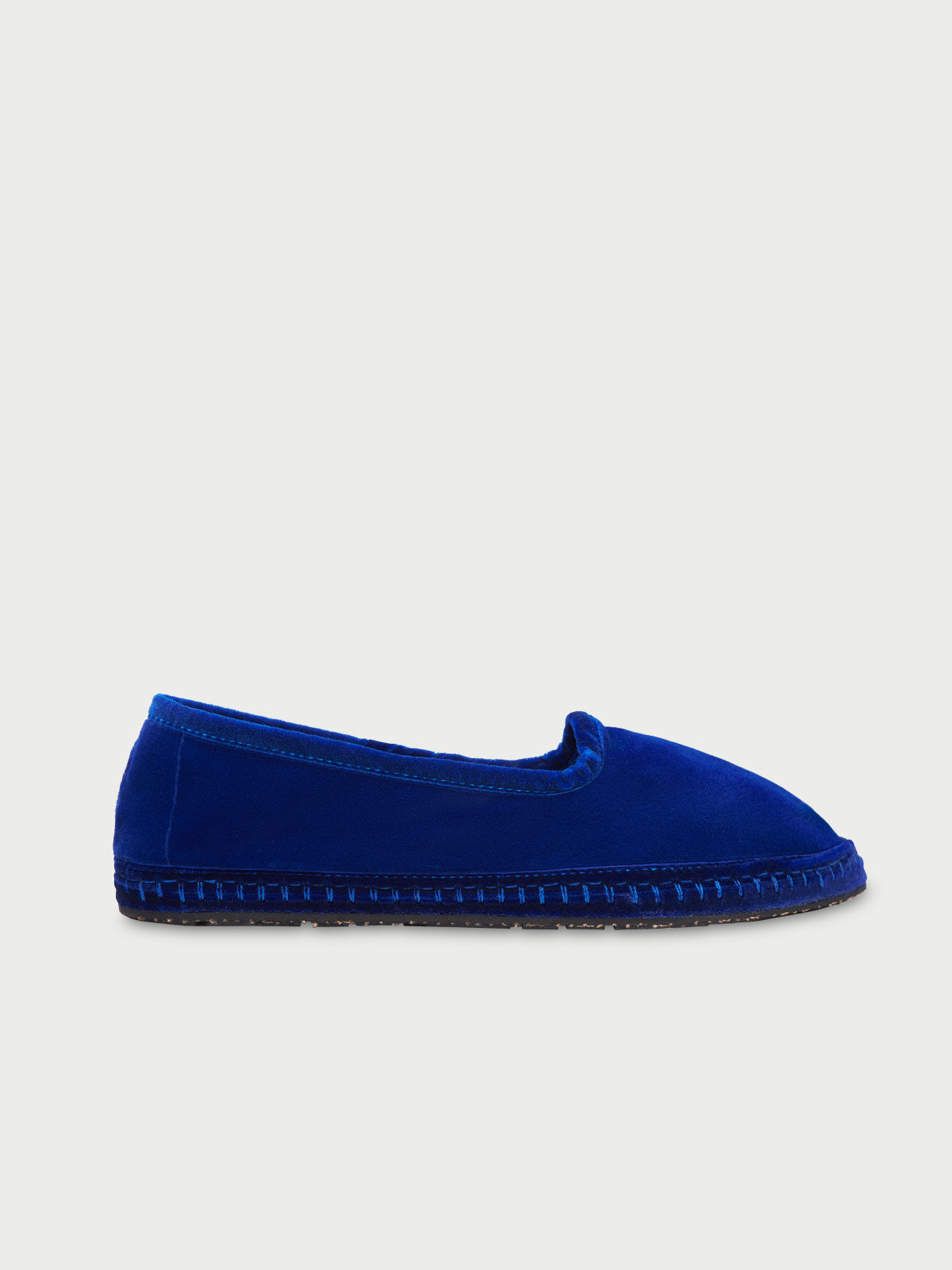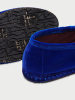 - Velvet slipper in dark blue with dark blue velvet piping.