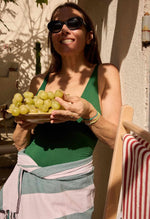 Fouta Croisette en coton doux, séchage rapide et design élégant. Un accessoire pratique pour deux grâce à sa taille, idéal pour vos sorties au bord de l’eau ou vos vacances.
