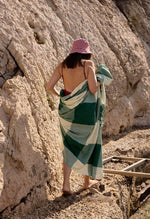 Spacieuse et douce, cette fouta calanque colorée est l’accessoire parfait pour vos instants de détente en plein air.
