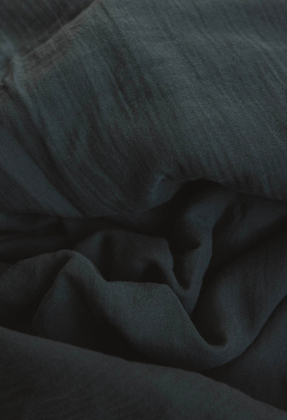 100% double gaze de coton lavé Fils de coton peignés Tissu certifié OEKO-TEX® (sans substances nocives) Dimensions : 260x240 cm Finition : Housses doubles : boutons cachés en nacre Housse 1 personne : zip invisible Livrée dans une pochette coordonnée Fabriquée au Portugal