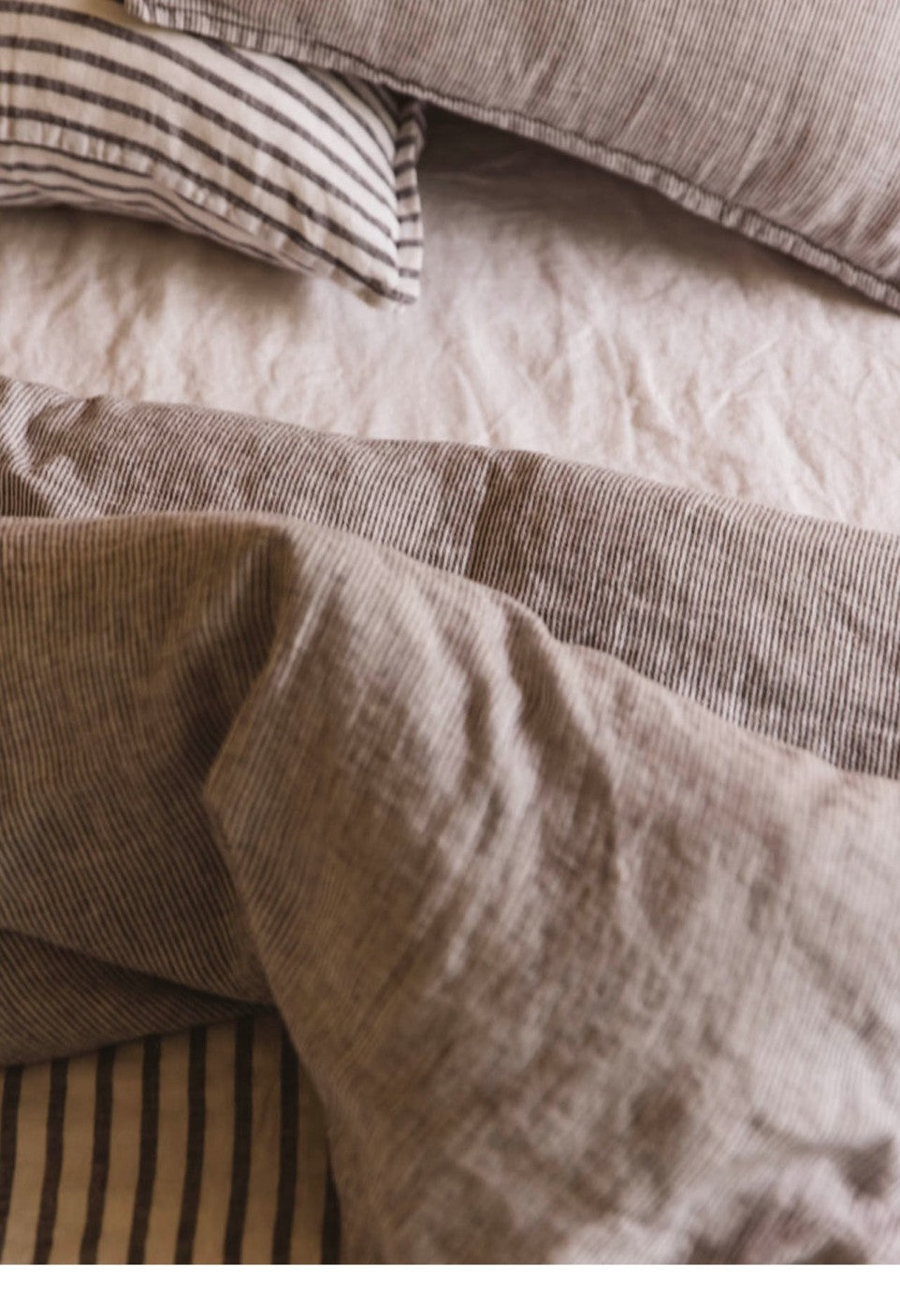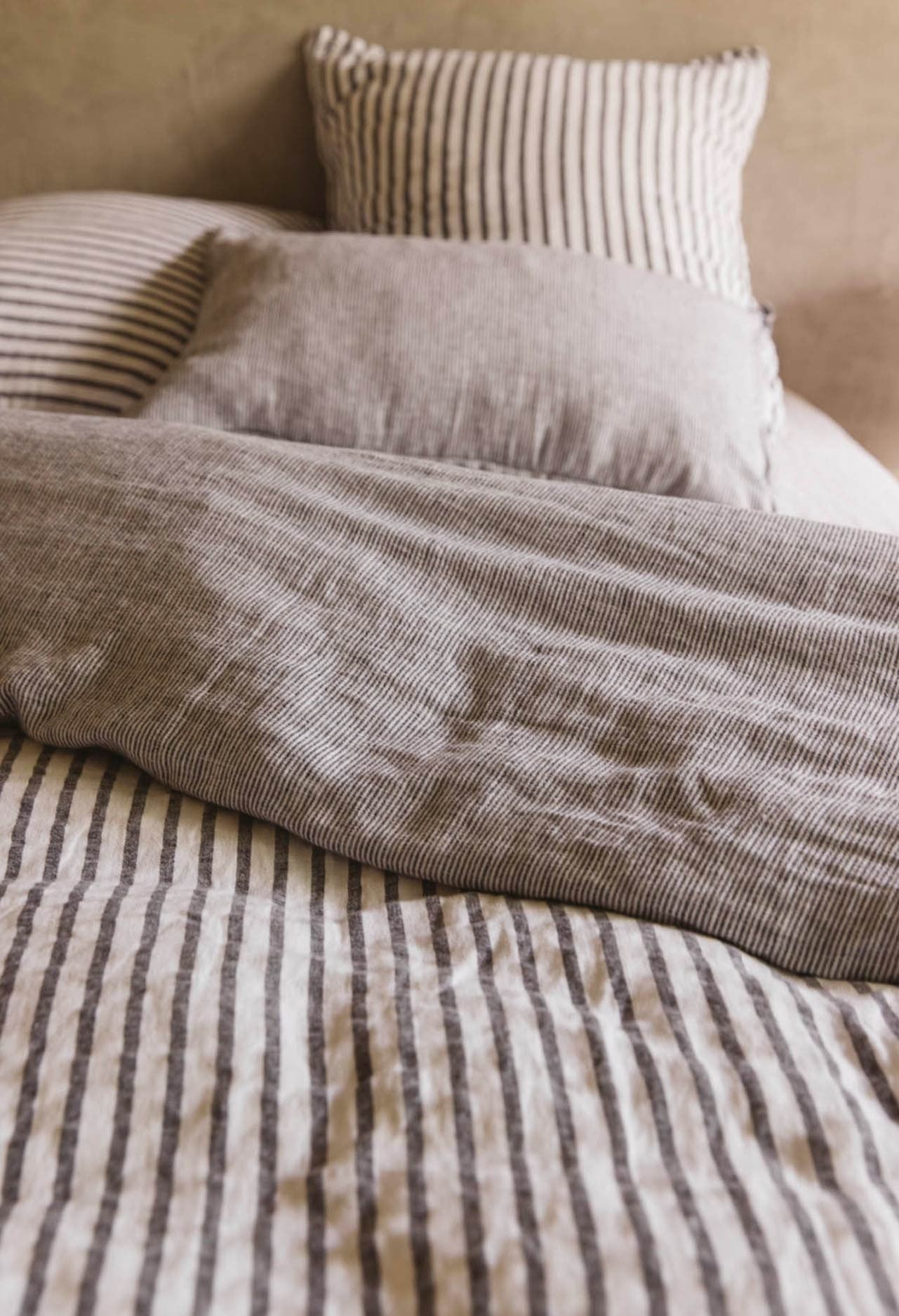 Coup de cœur pour cette housse de couette en lin lavé rayé Black/Milk. Fines rayures d'un côté, larges de l'autre... À vous de choisir !