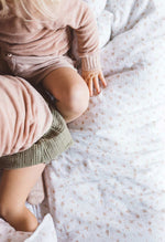 Notre parure de lit Etincelle Miel plongera votre enfant dans un monde de douceur. 100% coton organique.