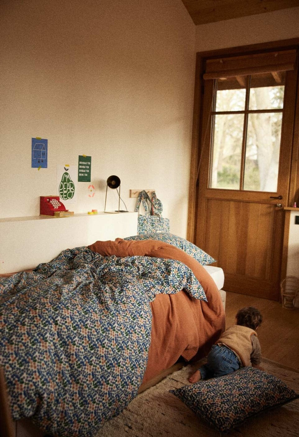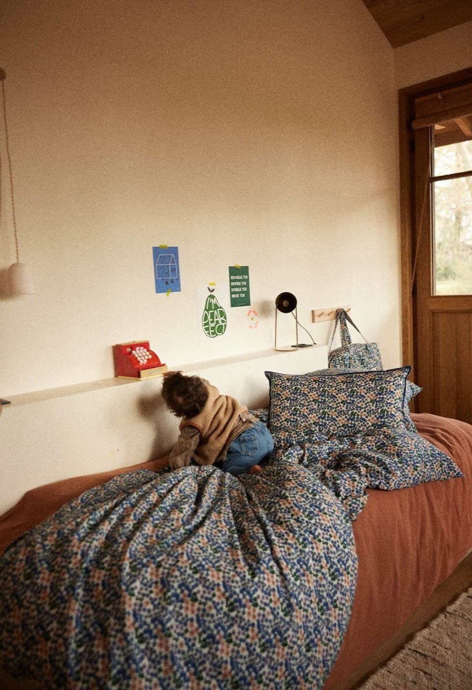 La parure de lit une personne Flower bleu Azur, fleuri et coloré, dans laquelle votre enfant rêverait de se blottir.