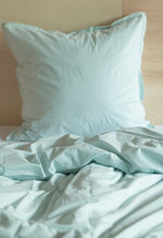 Optez pour la taie d’oreiller en coton lavé coloris mint, une matière douce, fraîche et naturellement agréable pour un confort au quotidien.