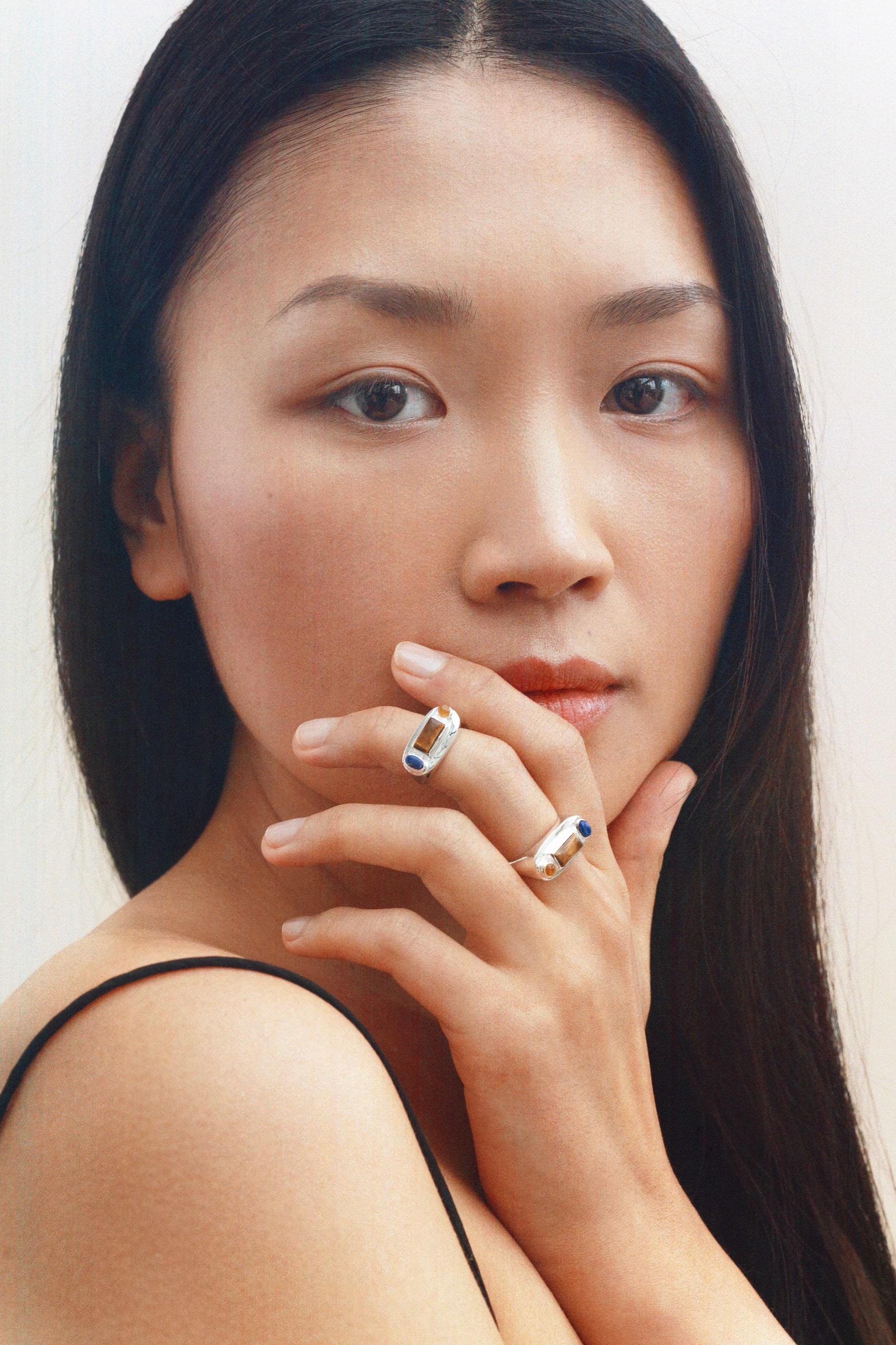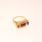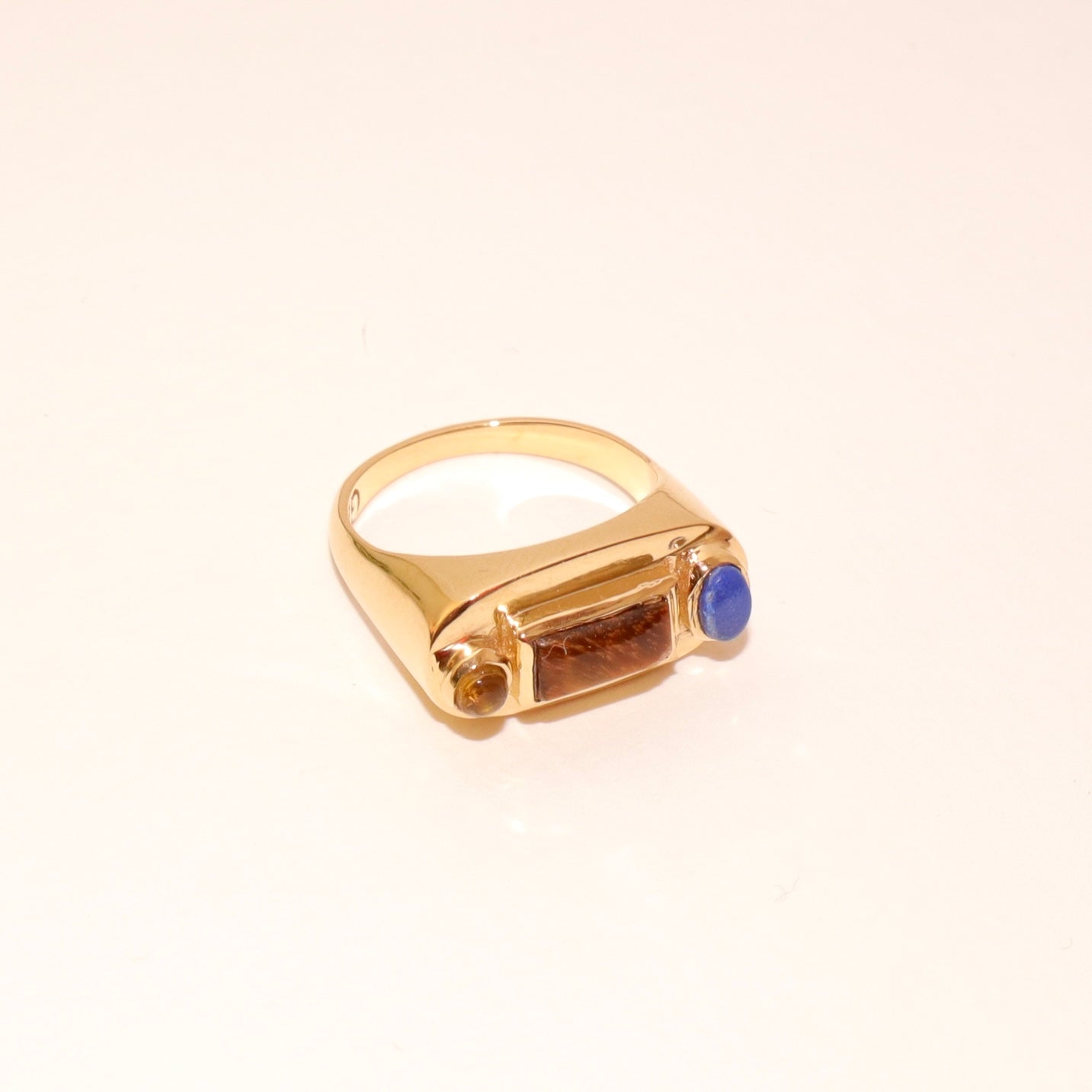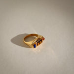 La bague Solis est délicatement sertie d'un trio de pierres naturelles. C'est une pièce de caractère grâce à ses formes et ses teintes différentes.