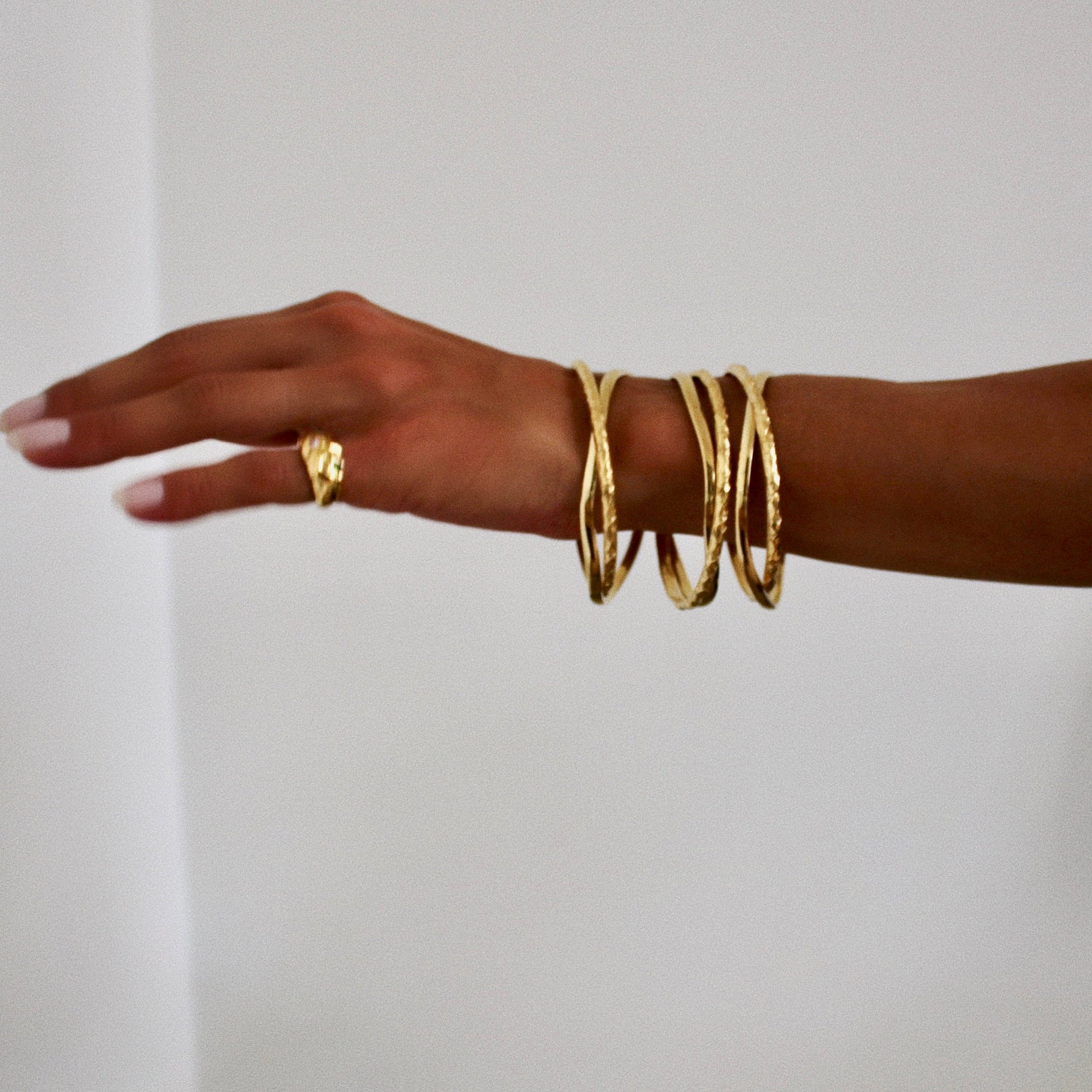 Le bracelet Sienna est irrésistible grâce au mélange de forme et de texture.
