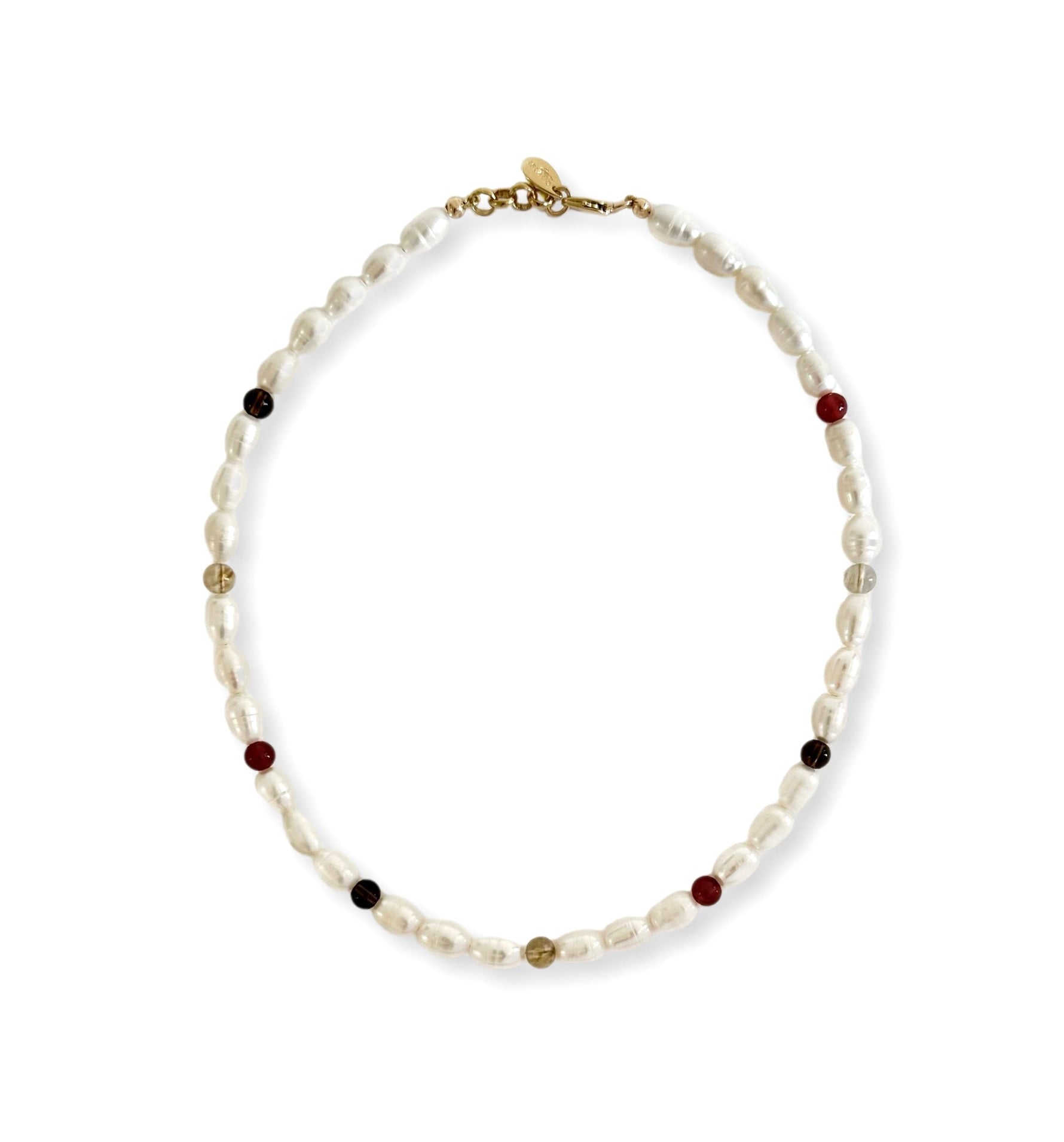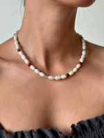 Le collier Billa se pare de délicates perles d'eau douce et de pierres naturelles colorées.