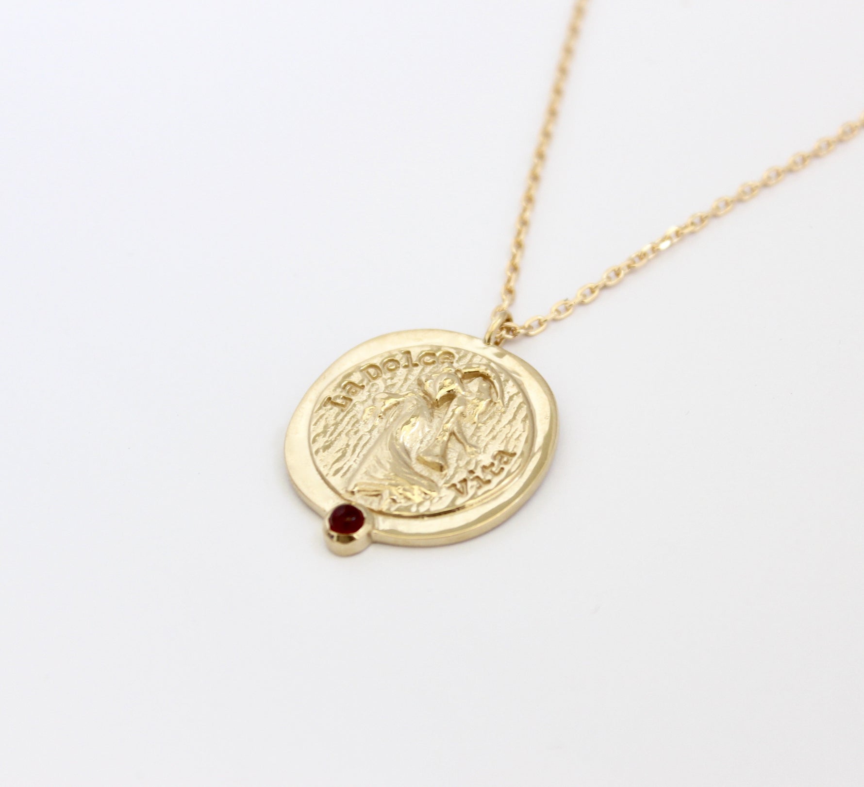 - Pendentif gravé d'une Ménade et de l'inscription "Dolce Vita"