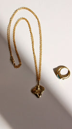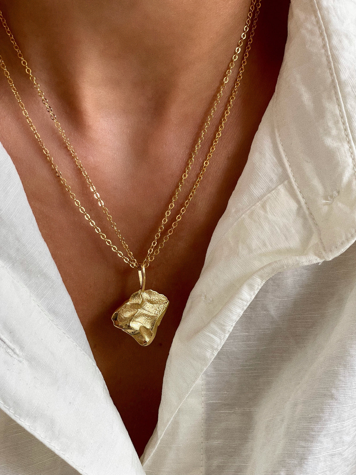 Le collier Feda est doté d'un pendentif aux formes et textures ondulées.