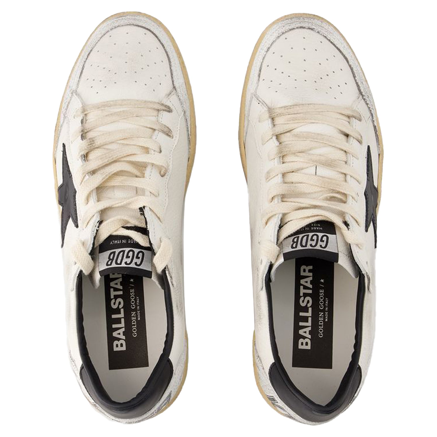 Baskets Ball Star - Golden Goose - Cuir - Blanc/Noir. Matière principale : cuir de veau lisse. Semelle : caoutchouc. Pointure : conforme à la taille italienne. Fermeture : lacets. Bout : rond.