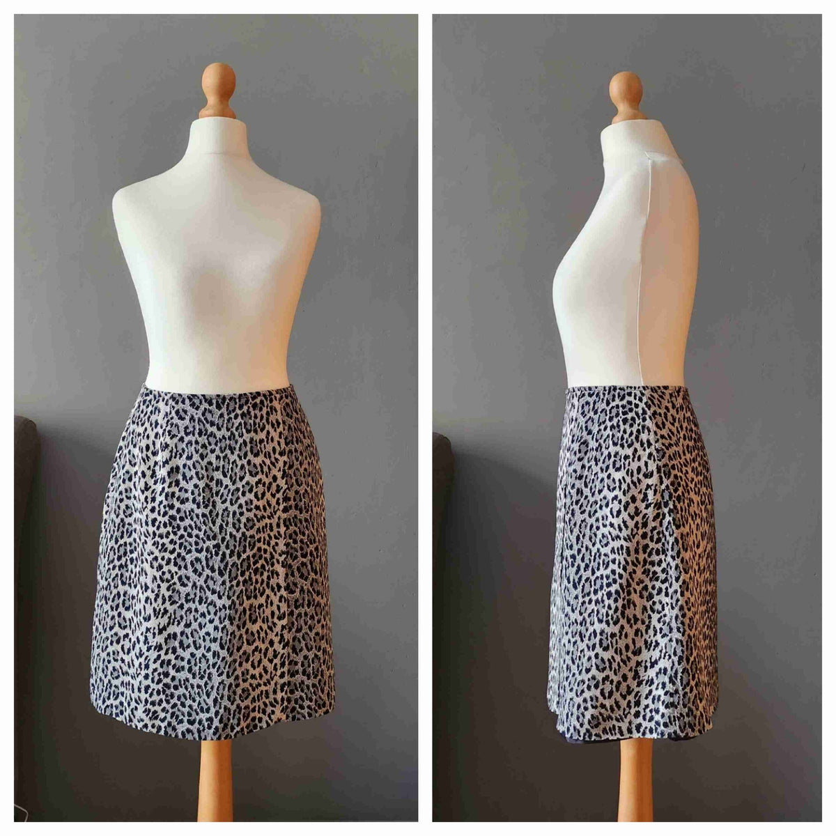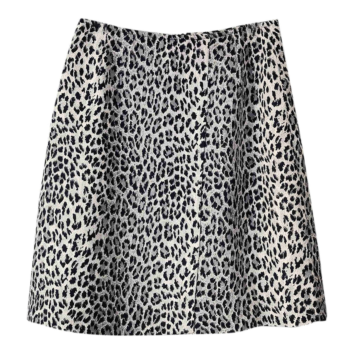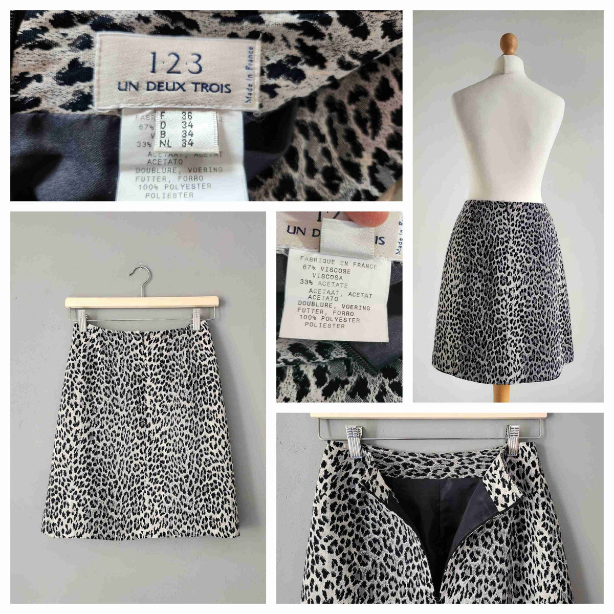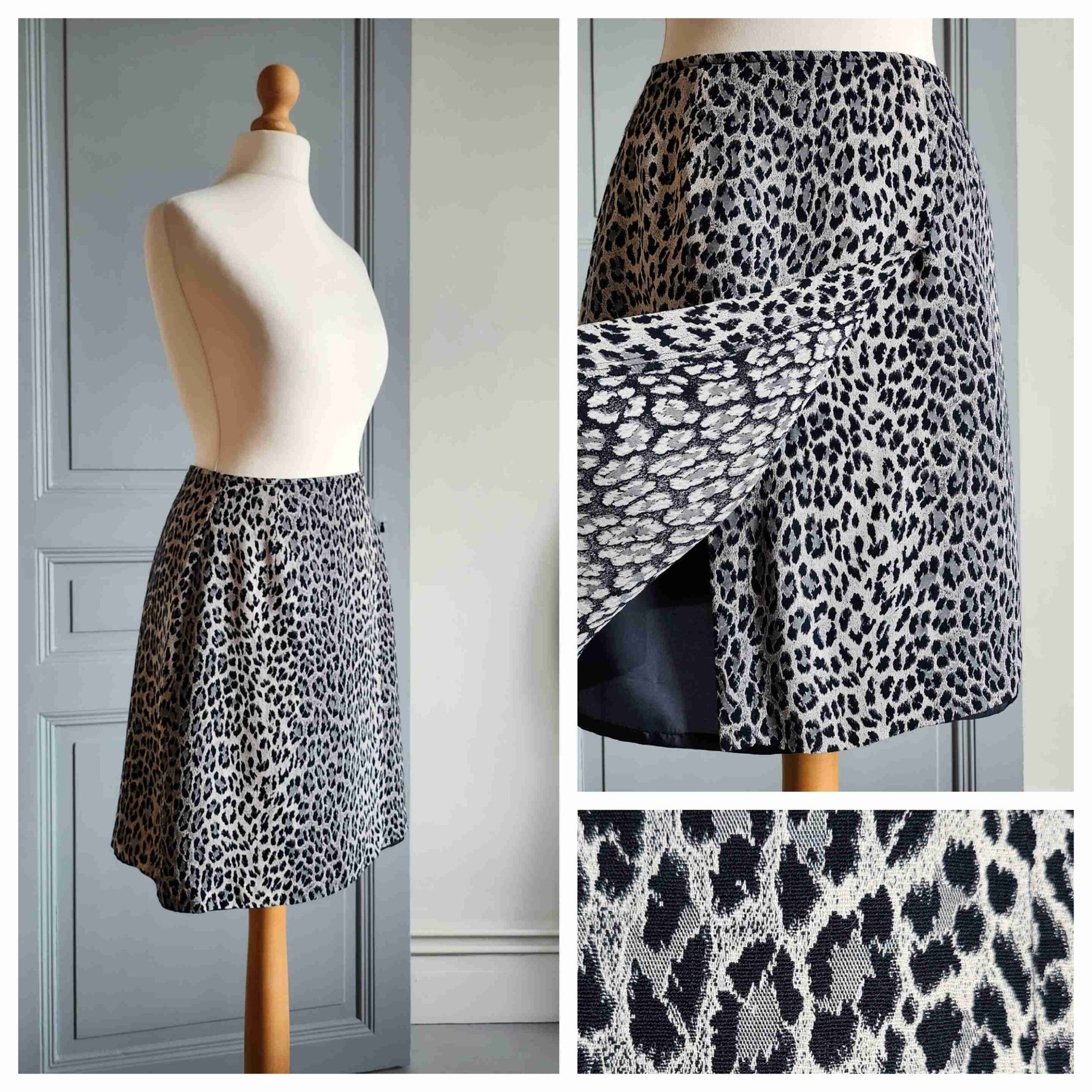 Unit price perHigh-waisted mini skirt in beige, grey and black leopard print viscose, front slit with a wrap effect, lined, zip fastening at the back. Brand 123, made in France.