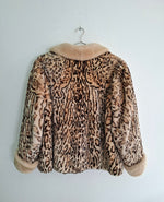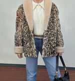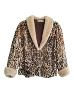 Manteau en fourrure léopard. Forme légèrement évasée. 2 poches latérales. Col châle. Doublure à motif animal. 1 poche intérieure avec finition plissée. Épaules 52 cm.Poitrine 59 cm Longueur 68 cm Taille 40