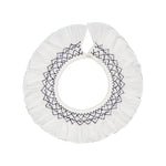 Découvrez le col à volants brodé Améline, un accessoire indispensable pour rehausser votre tenue ! Fabriqué à partir de twill blanc cassé 100 % certifié biologique, ce col est à la fois durable et élégant. Les smocks bleu marine ajoutent une touche de couleur, le rendant polyvalent et parfait pour toutes les occasions.