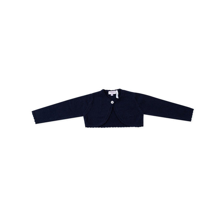 Béatrice, Boléro fille 1 bouton, 100% laine mérinos, Marine