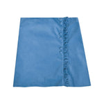 Dorothée, Jupe portefeuille à volants, en Velours côtelé bleu porcelaine
