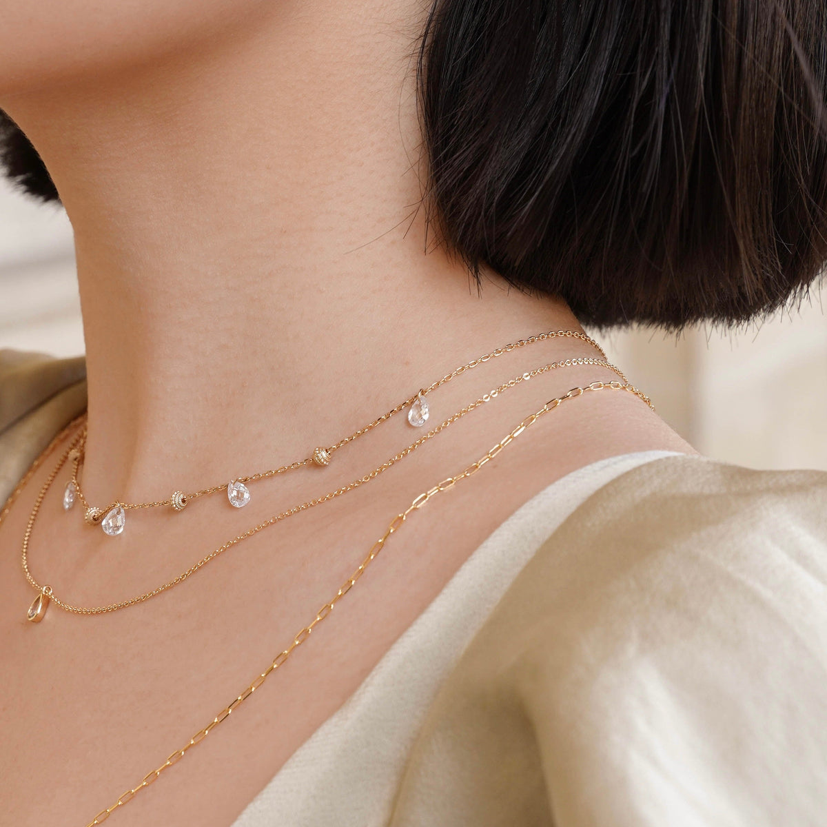 Collier en plaqué or 18k et oxydes de zirconium.