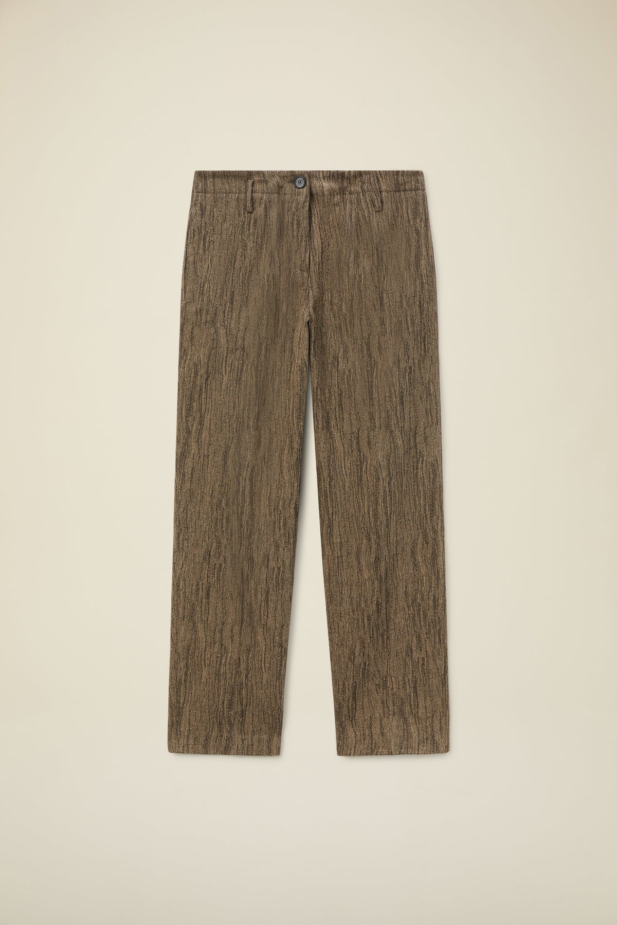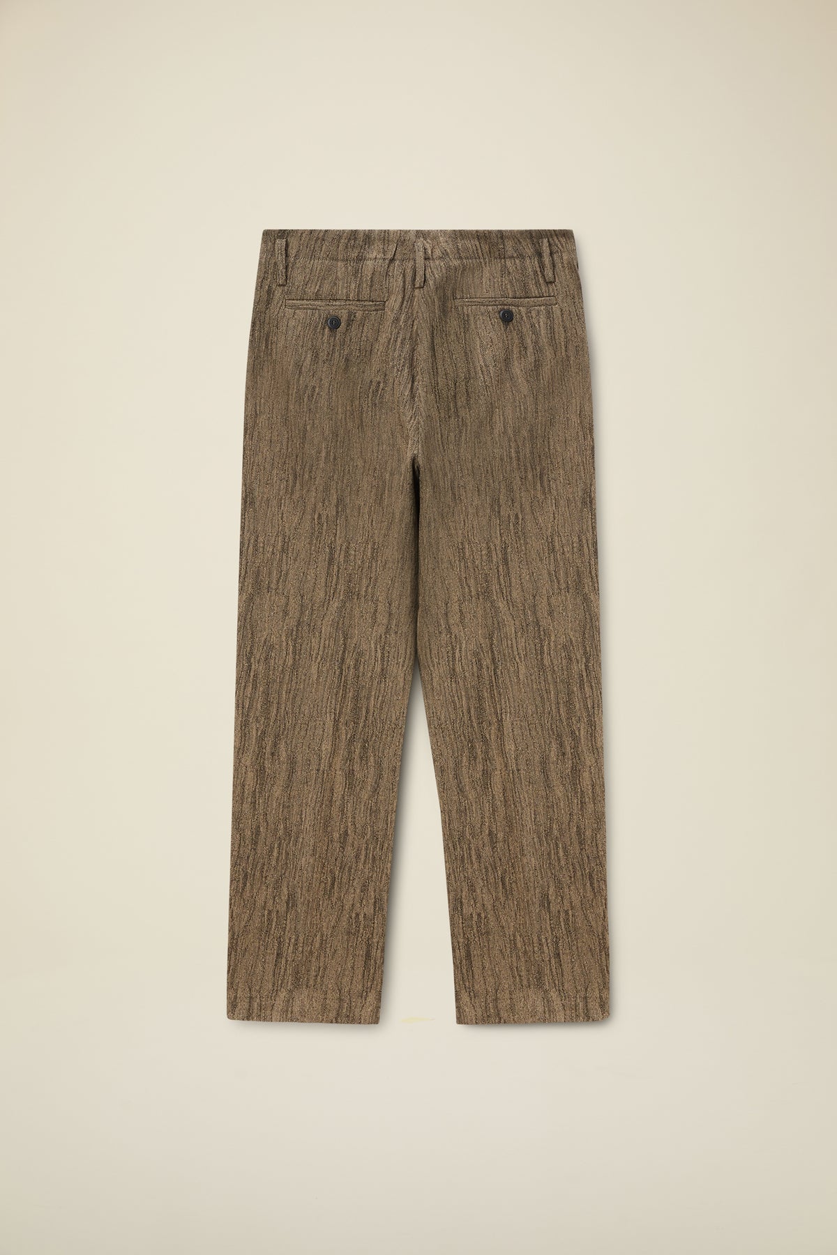 Pantalon en micro-armure jacquard de coton, viscose et laine