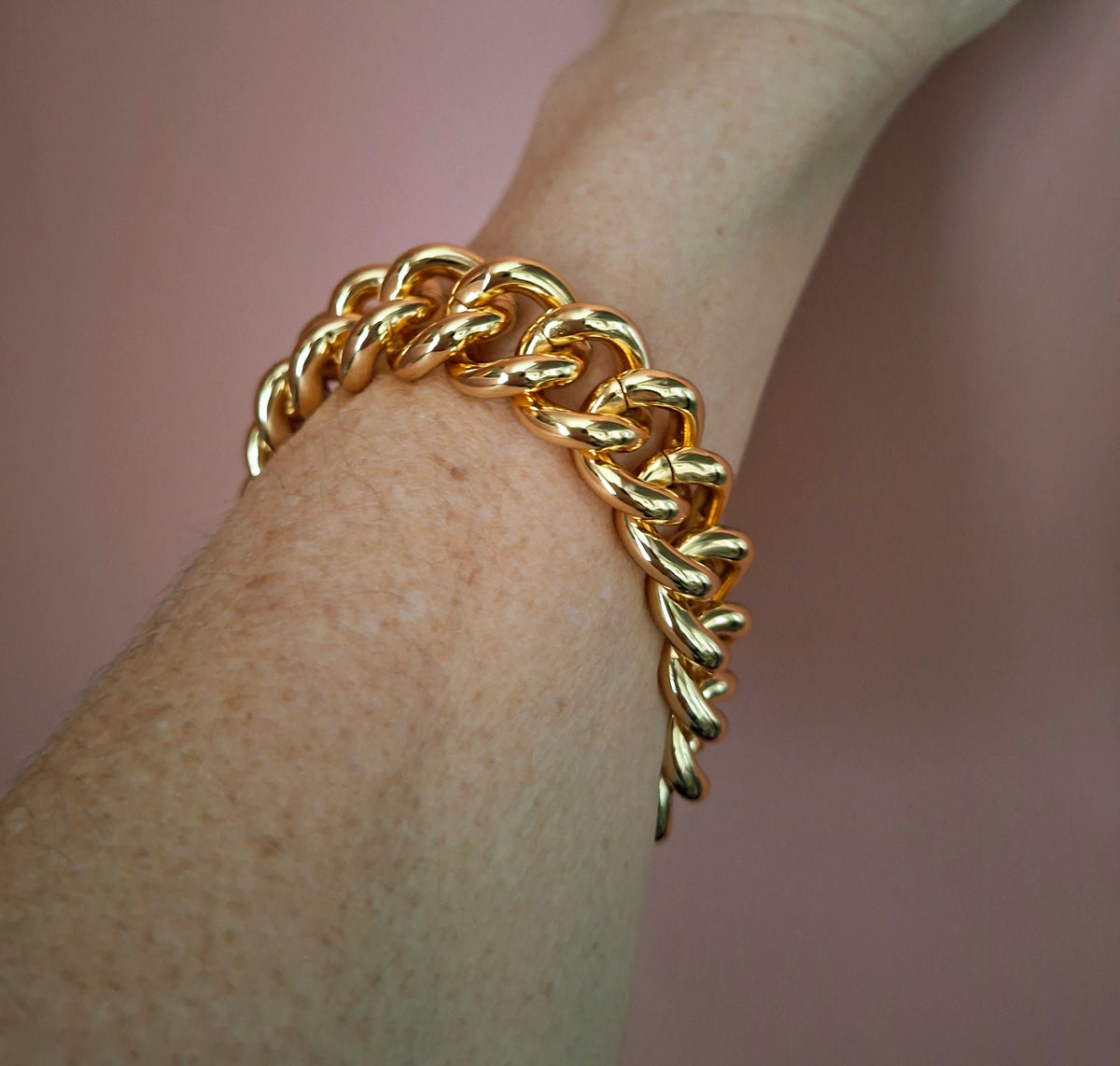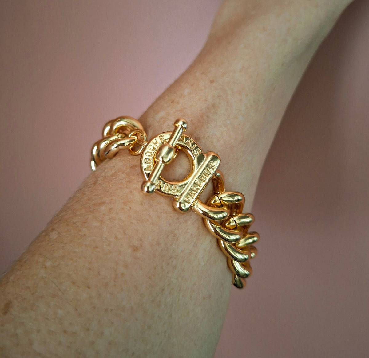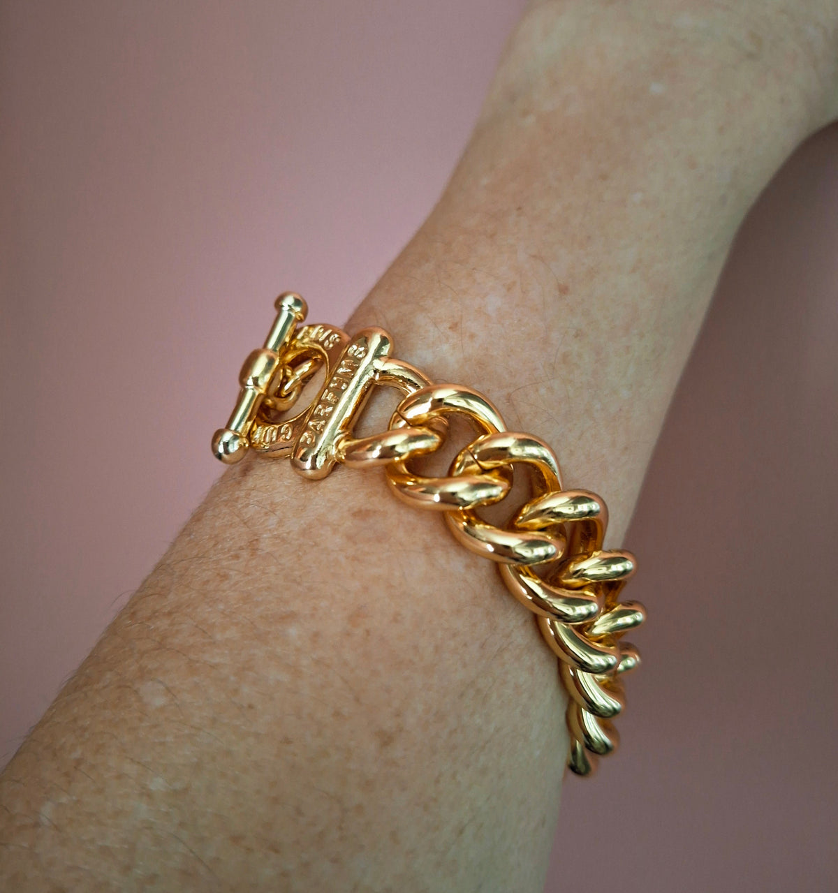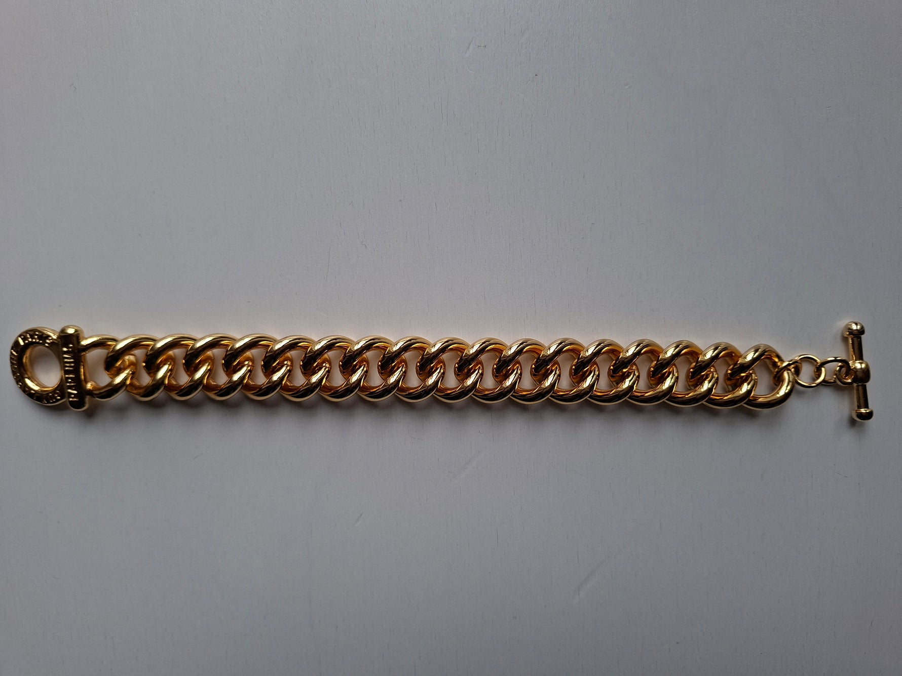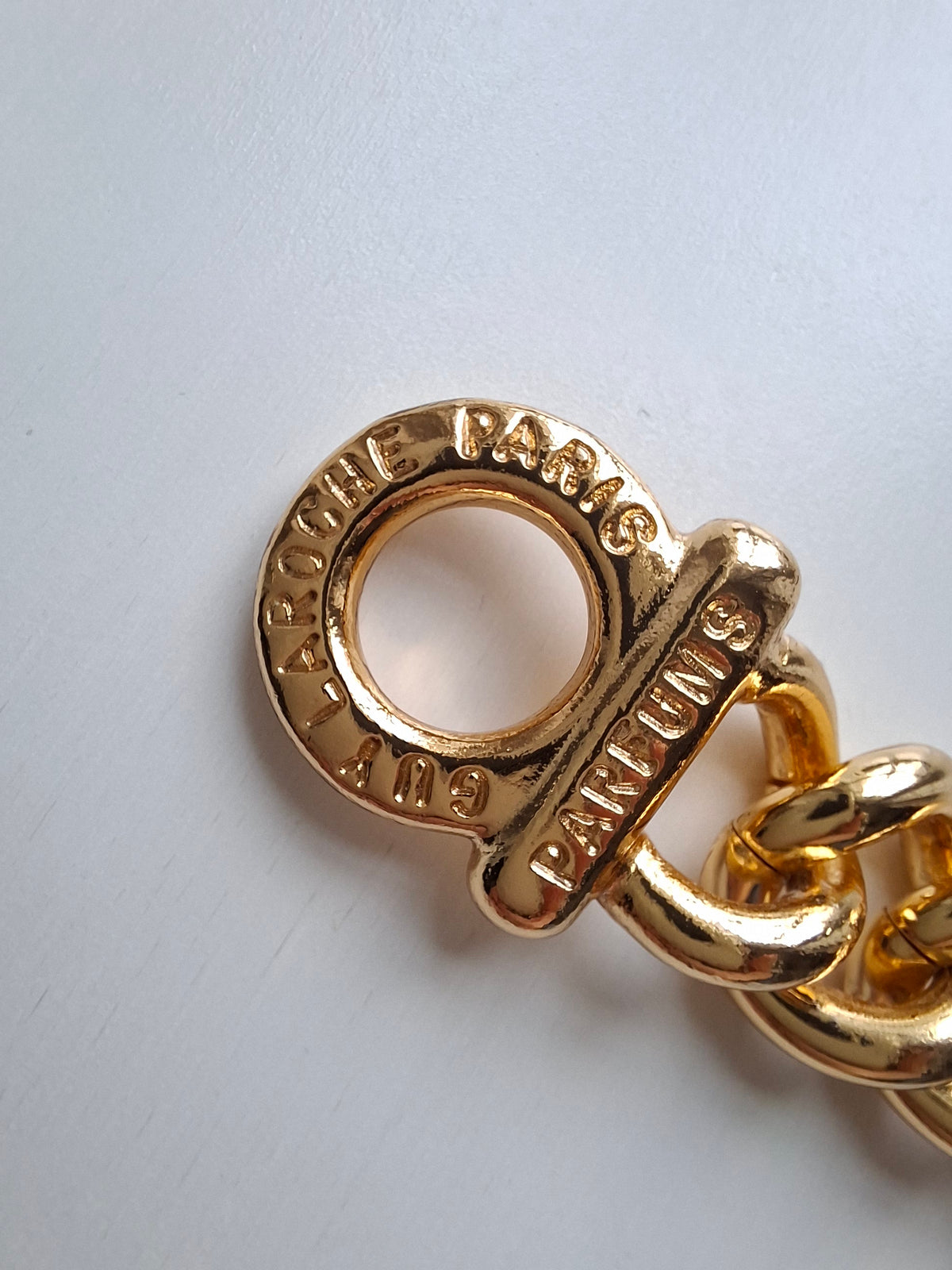 Bracelet gourmette gravé Guy Laroche Paris. En laiton doré. Longueur 21cm Largeur 17mm.