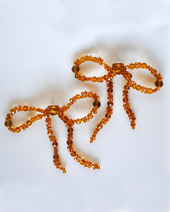 Pendientes de cuentas/bolas color marrón semitransparente con forma de lazo. Estilo boho chic. Ideales tanto para el día a día como para fin de año, navidad, fiesta, cena, boda, comunión, invitada... Diferentes y originales