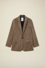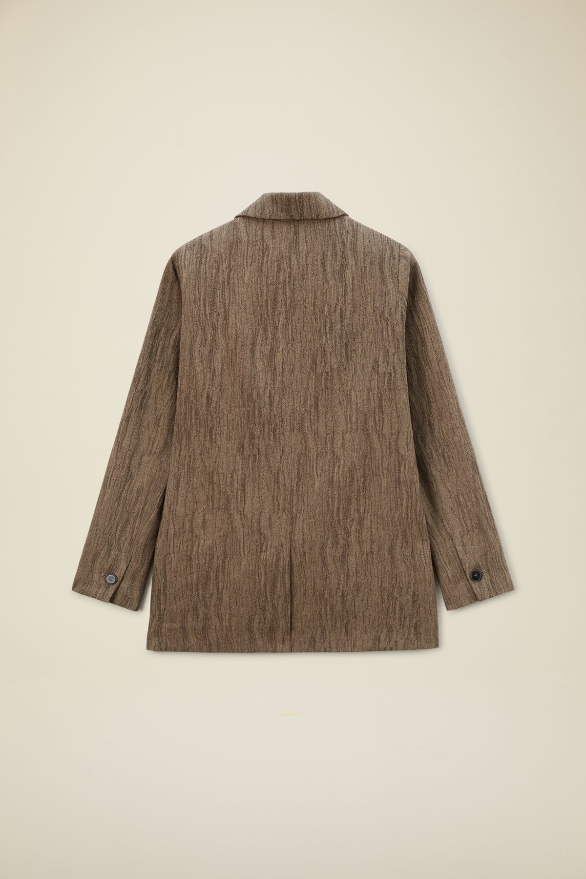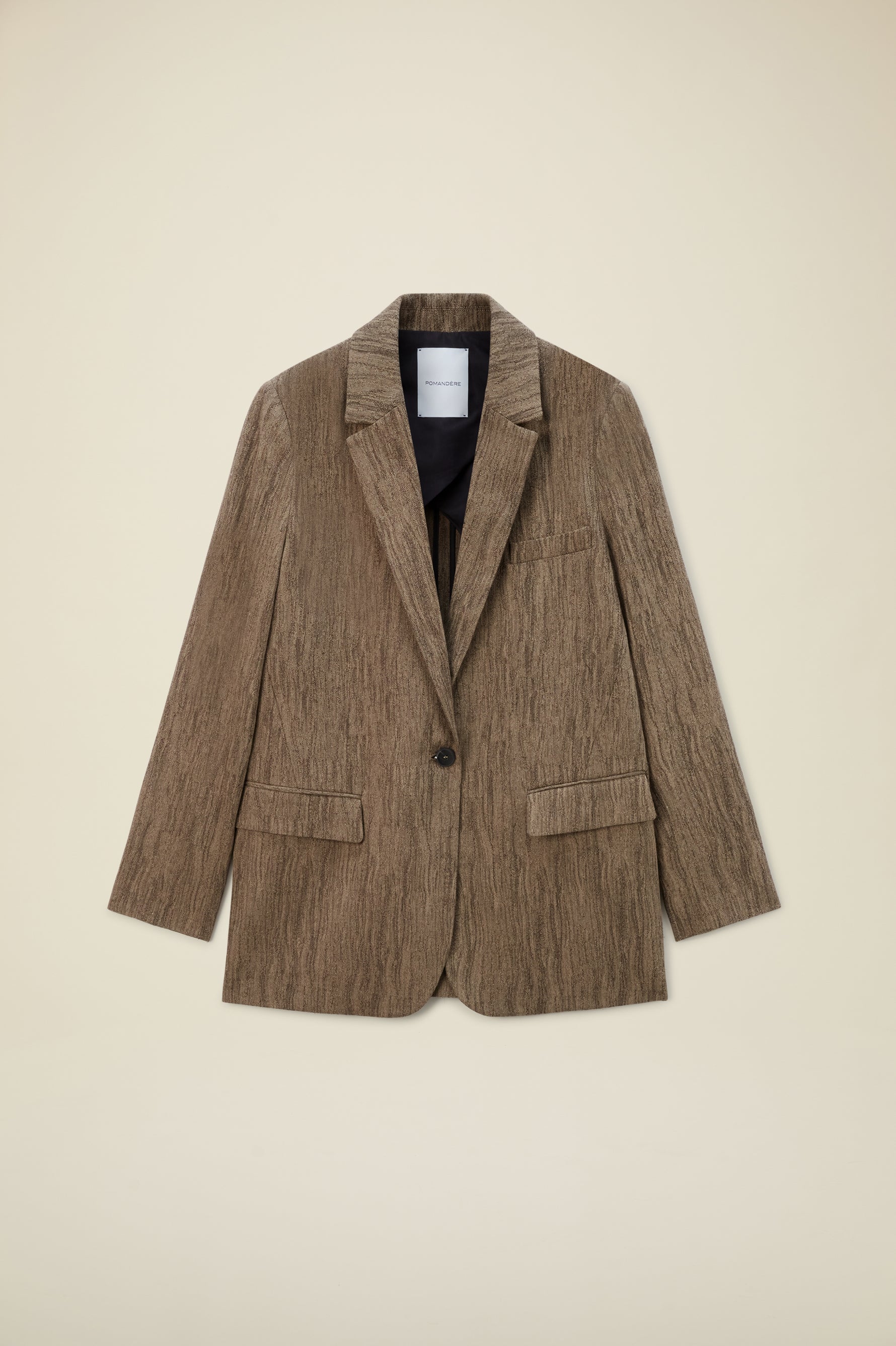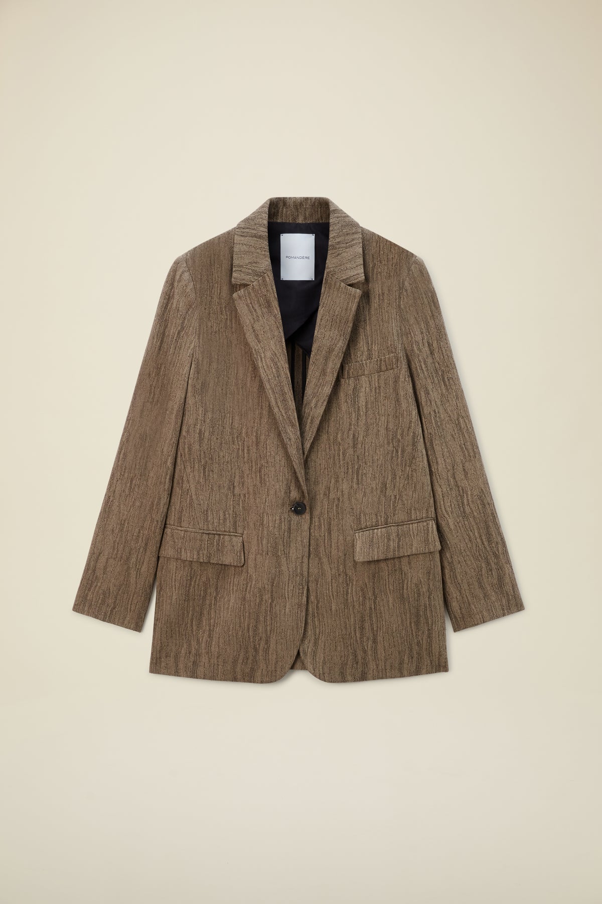 Veste 1 bouton en micro-armure jacquard de coton, viscose et laine