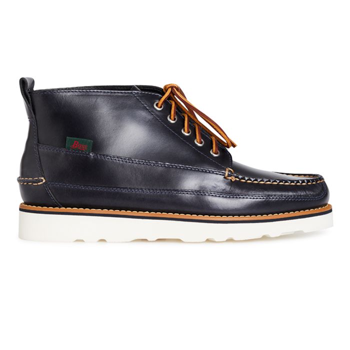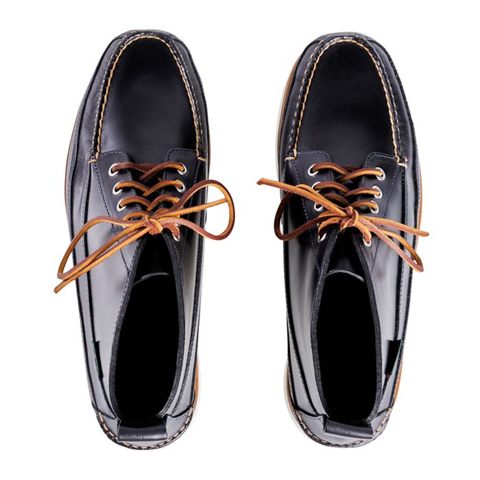 Lace-up Camp Moc Ranger model, Hand-stitched, Unlined, Leather insoles with gold foil branding, EVA sole.