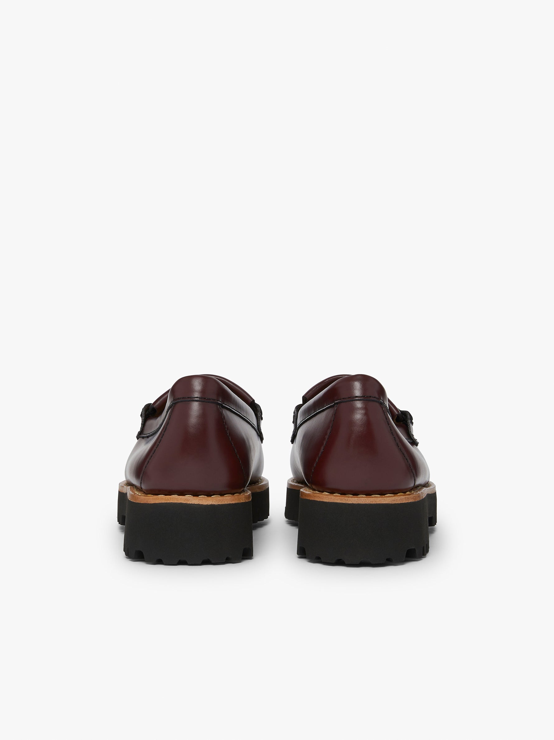 Hand-stitched, openwork polished leather moccasins, leather insoles with gold foil branding, tonal tassels, lightweight tonal EVA outsole