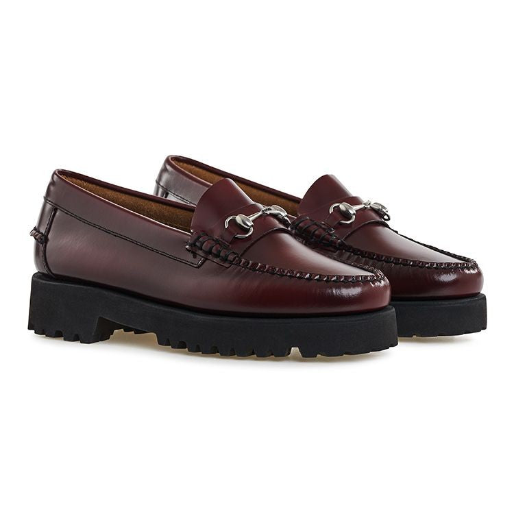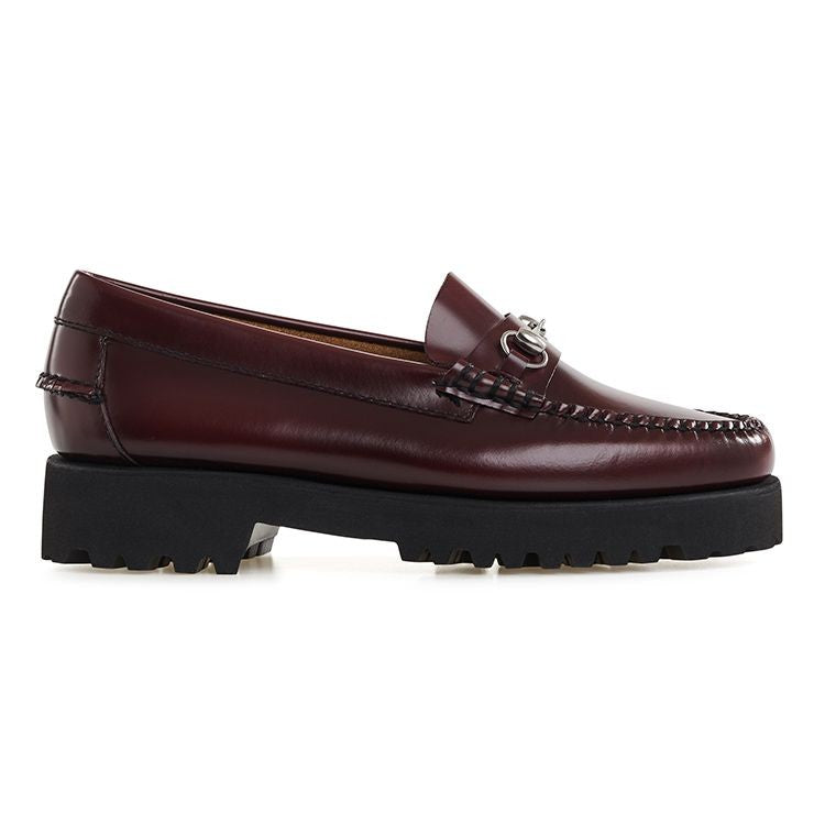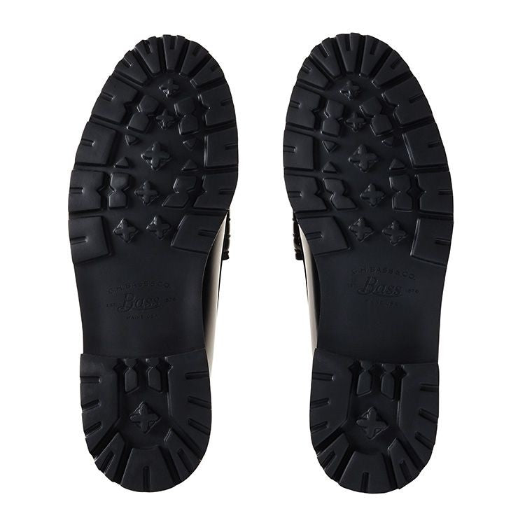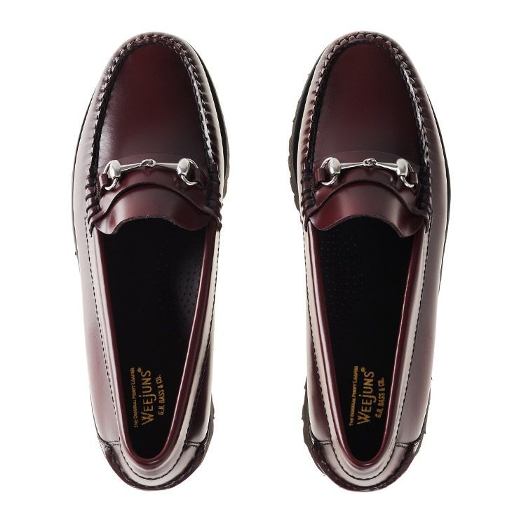 Hand-stitched polished leather moccasins, leather insoles with gold foil marking, rubber outsole.