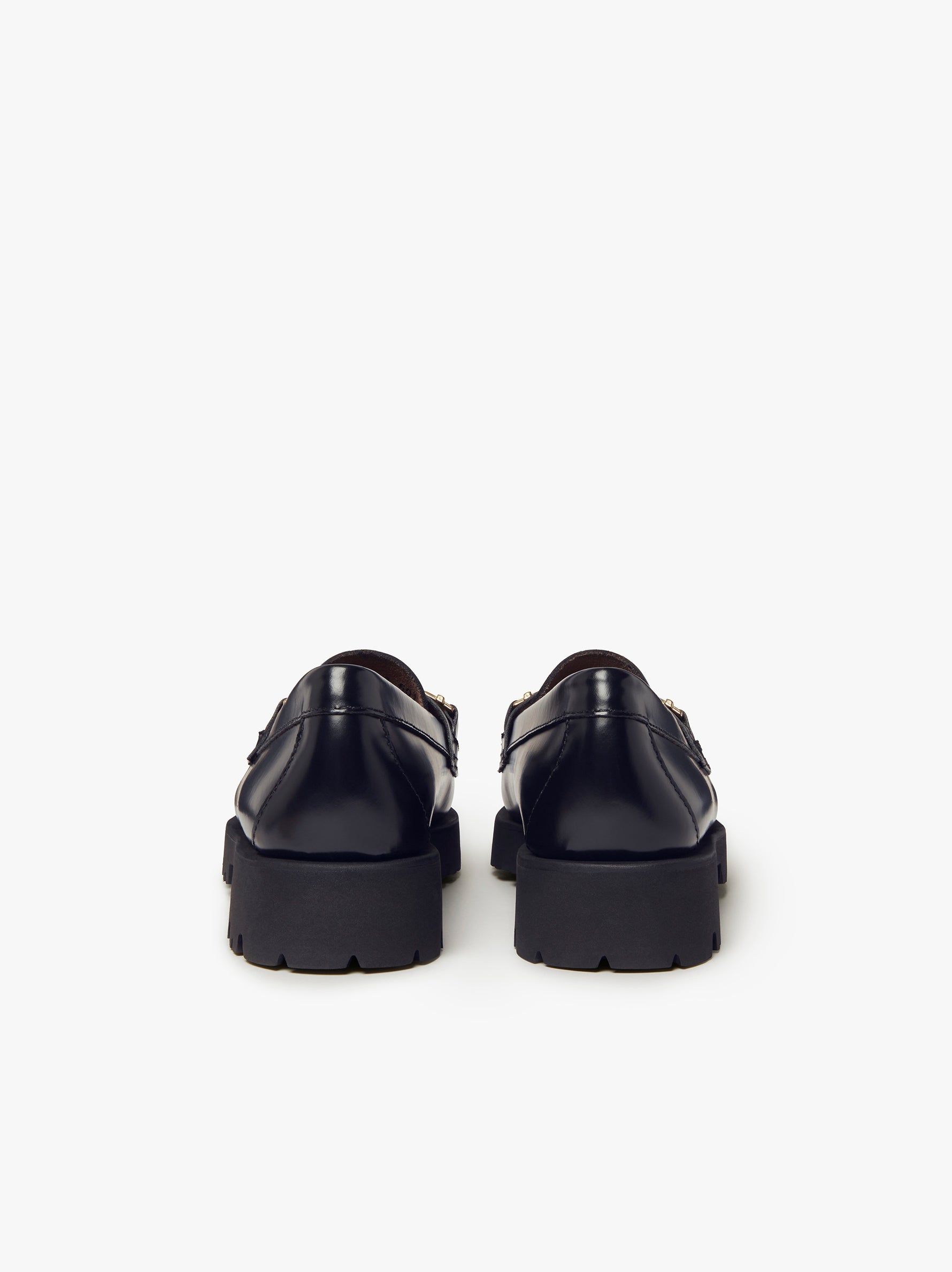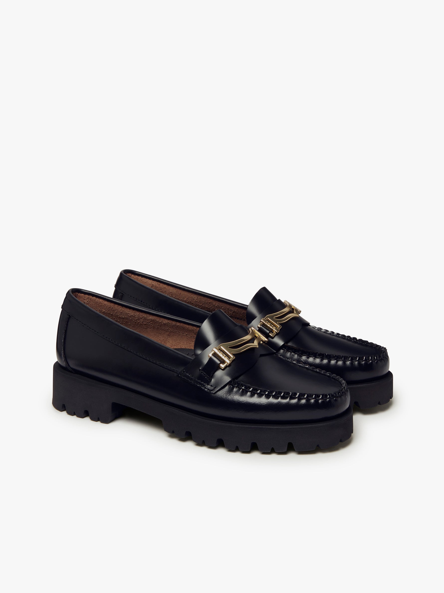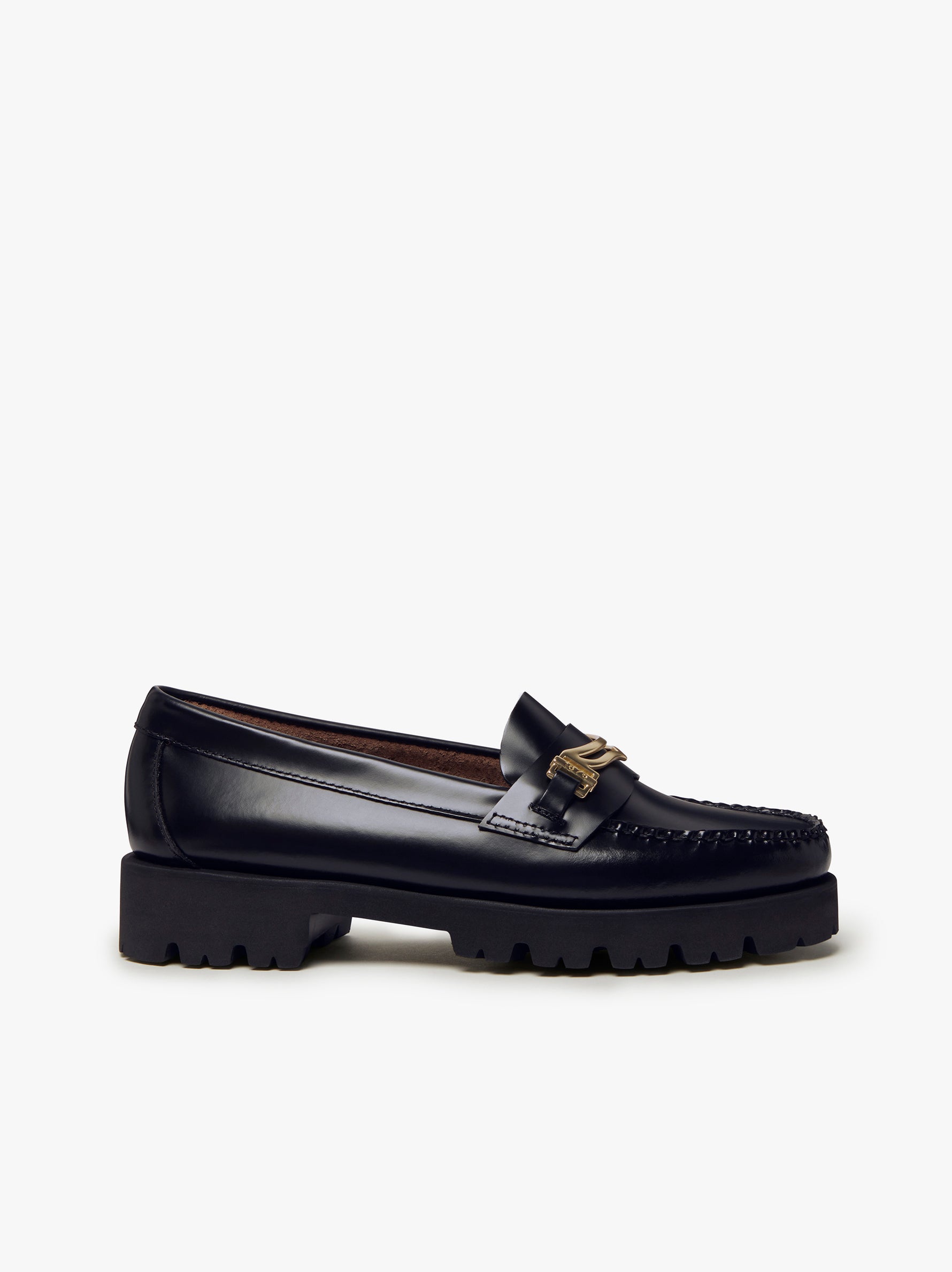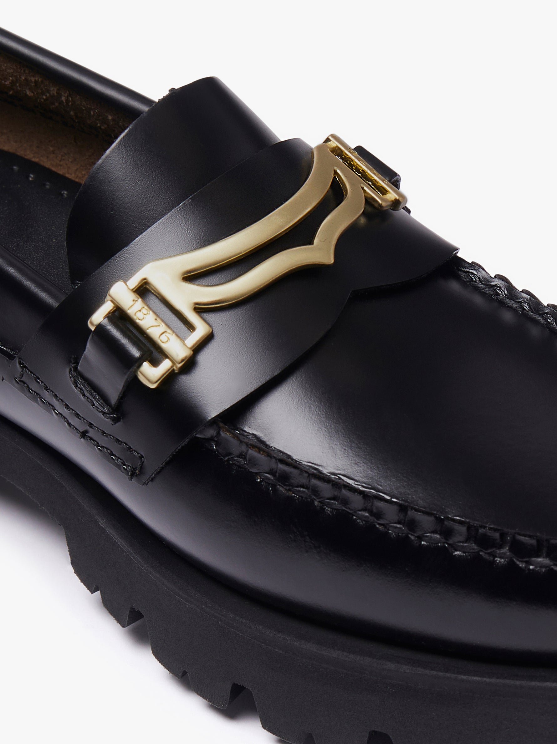 Hand-stitched polished leather moccasins, leather insoles with gold foil marking, lightweight tone-on-tone EVA outsole.