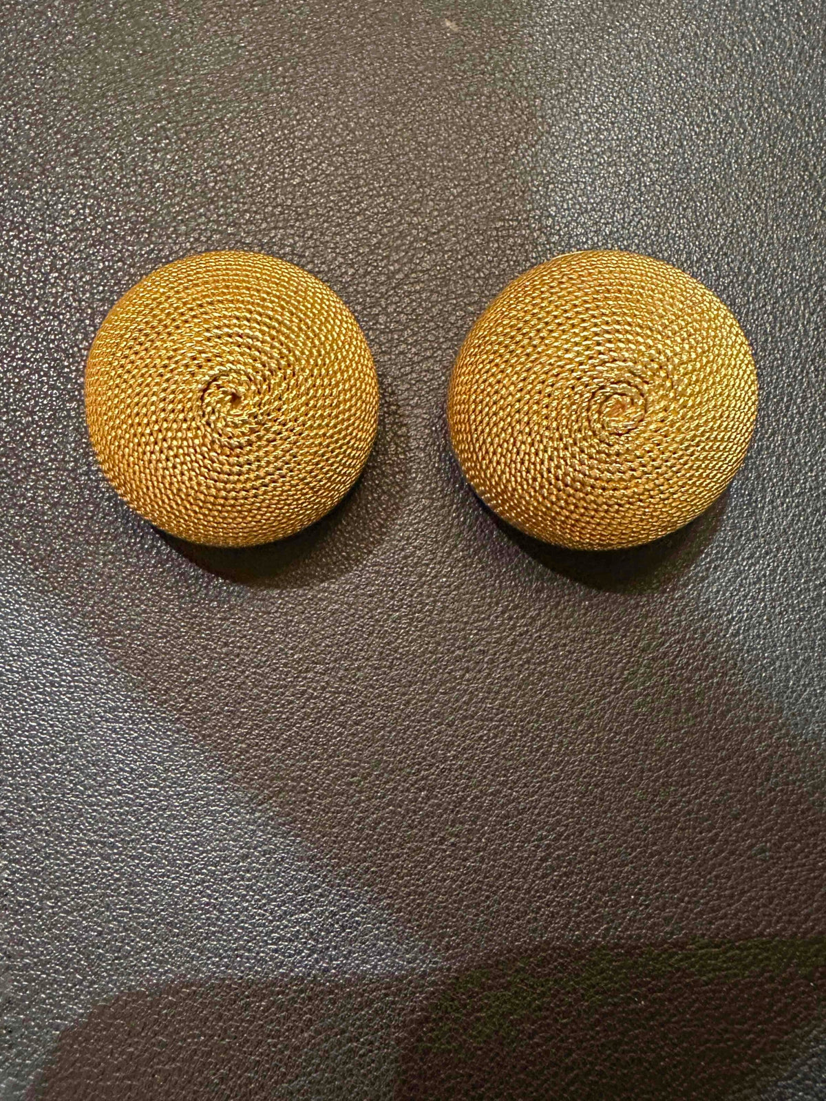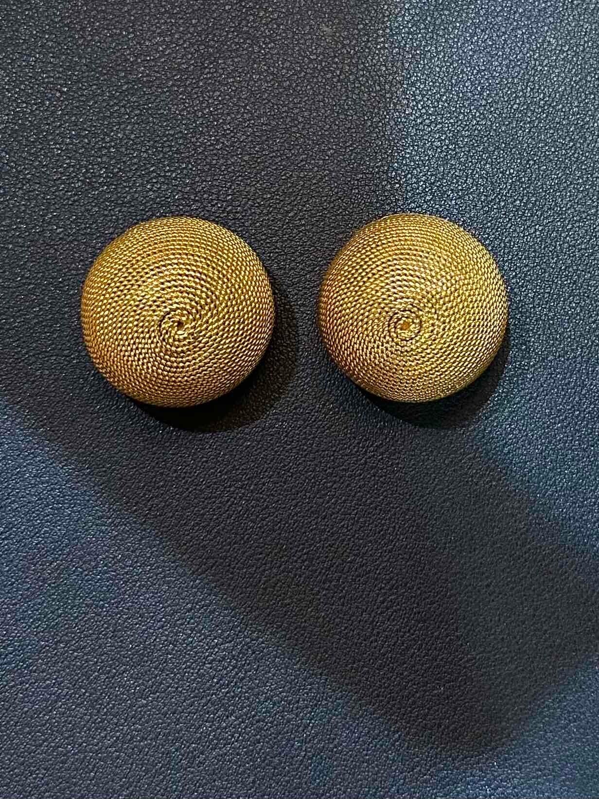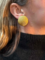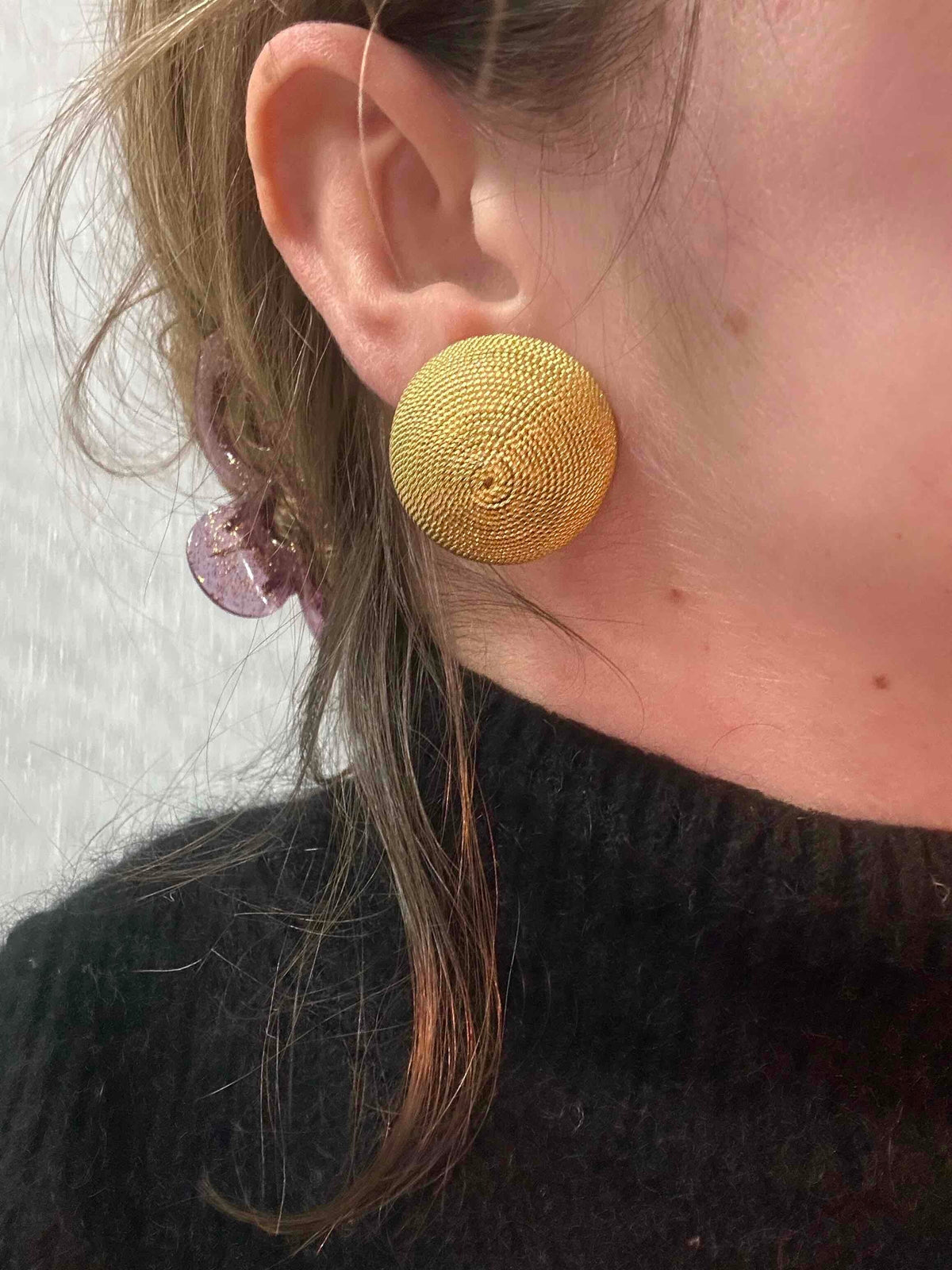 Celine clip-on earrings, in gold-plated brass, with hallmark, dome shape with chainette pattern, 3.5cm in diameter, made in Italy, 1980s.