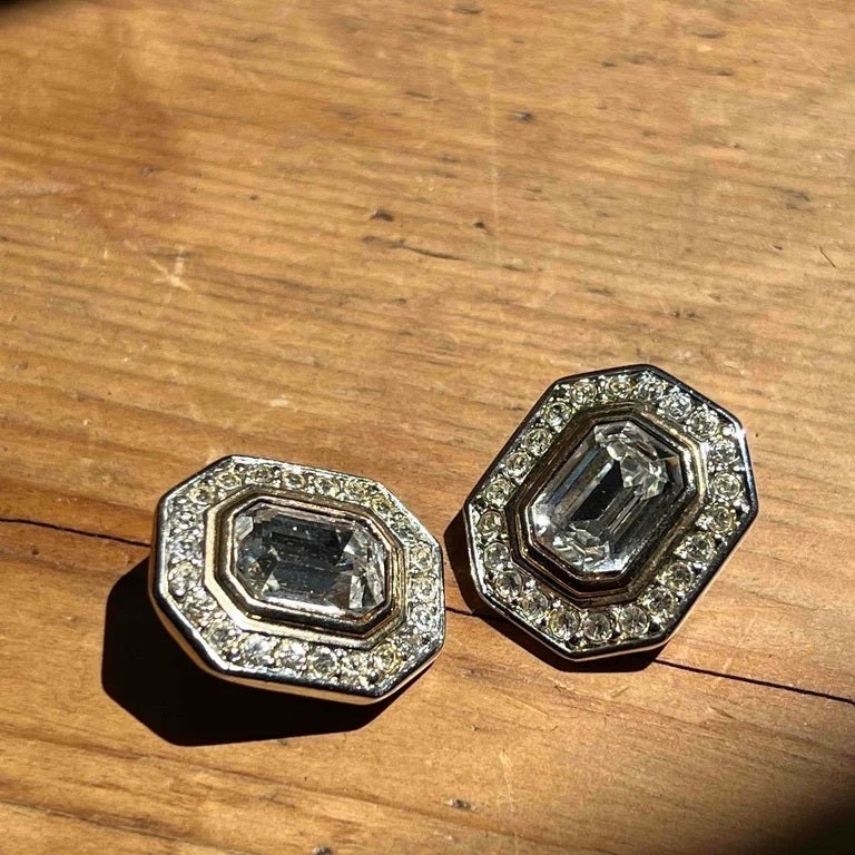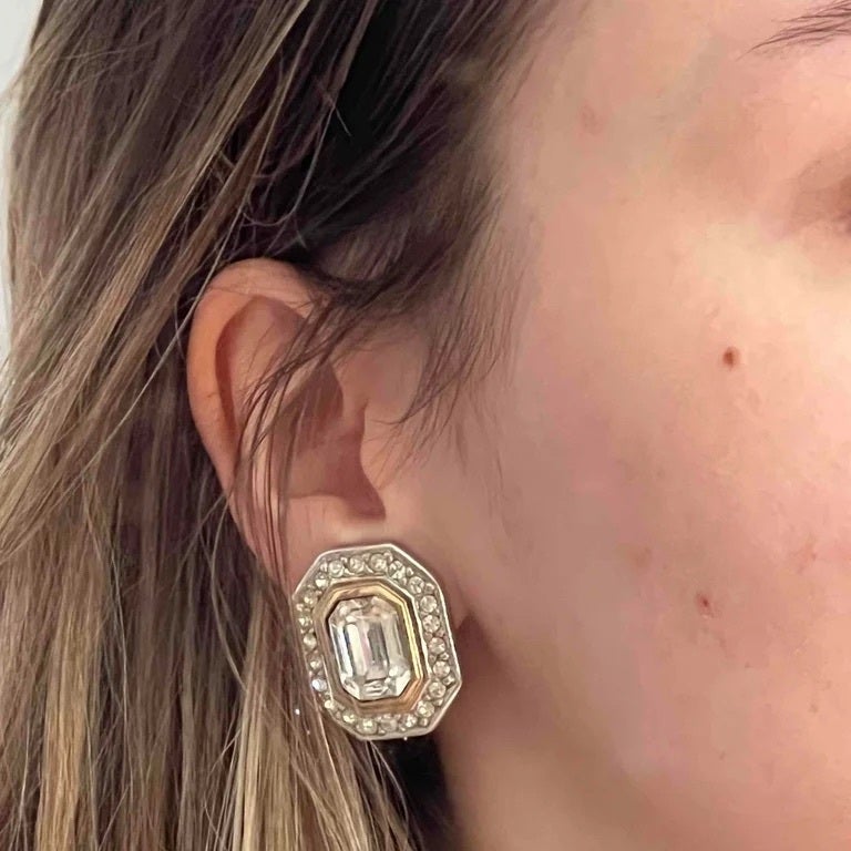 Unit price perClip-on earrings, in silver-toned metal with gold details. Maxi rhinestones and rhinestone dial.