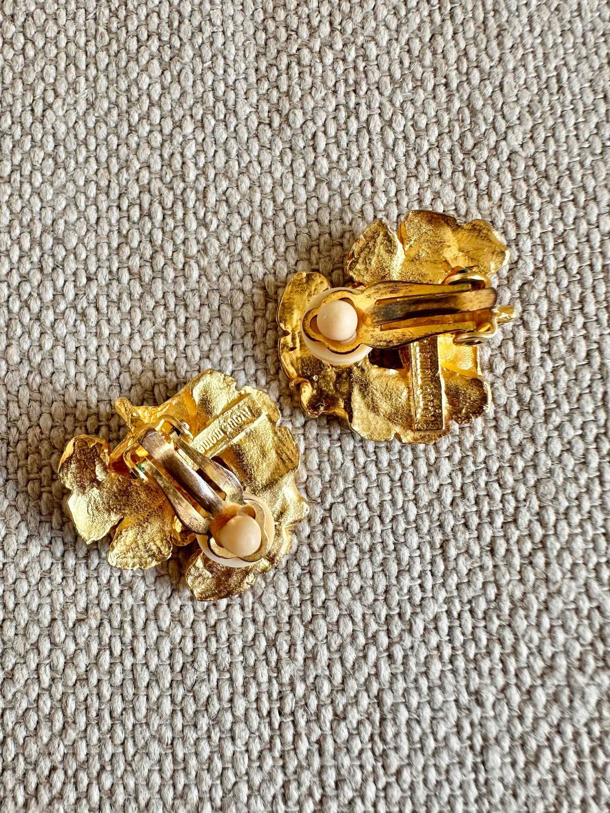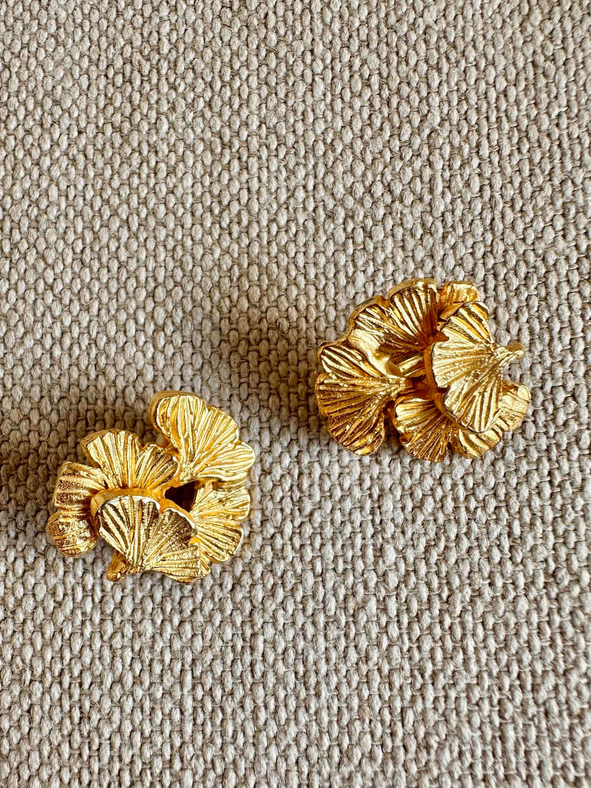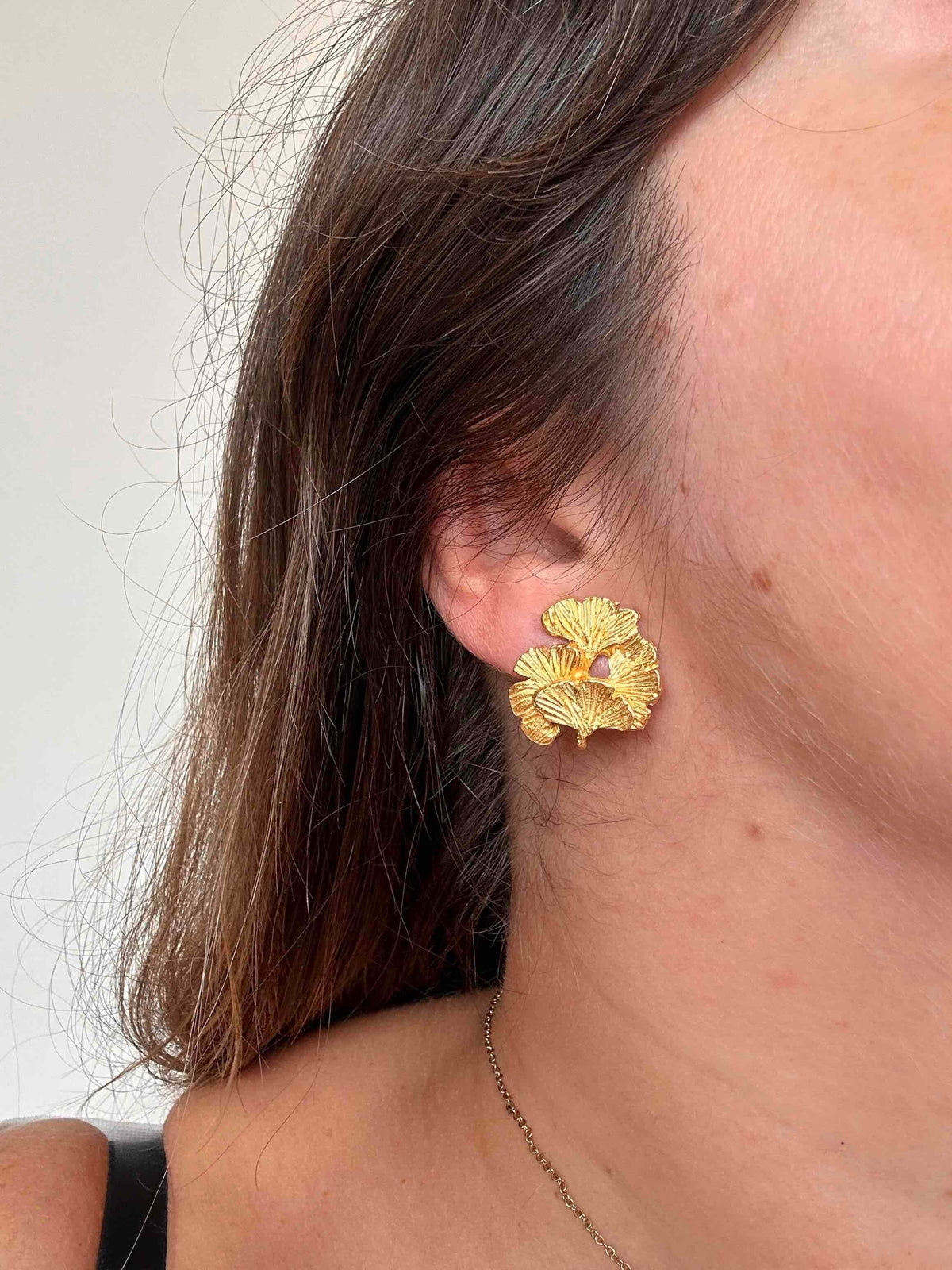 Unit price perClip-on earrings with Ginkgo leaves, gold-plated, made in France, 2.5cm x 2.5cm.