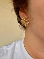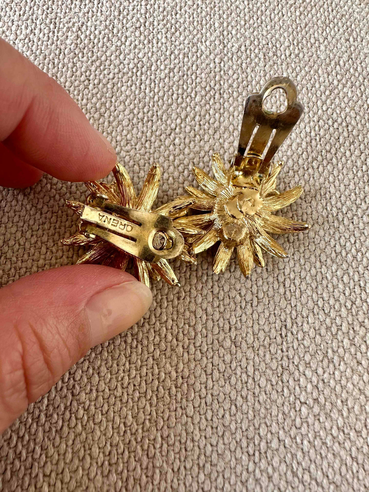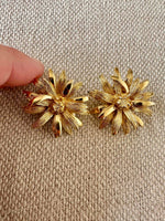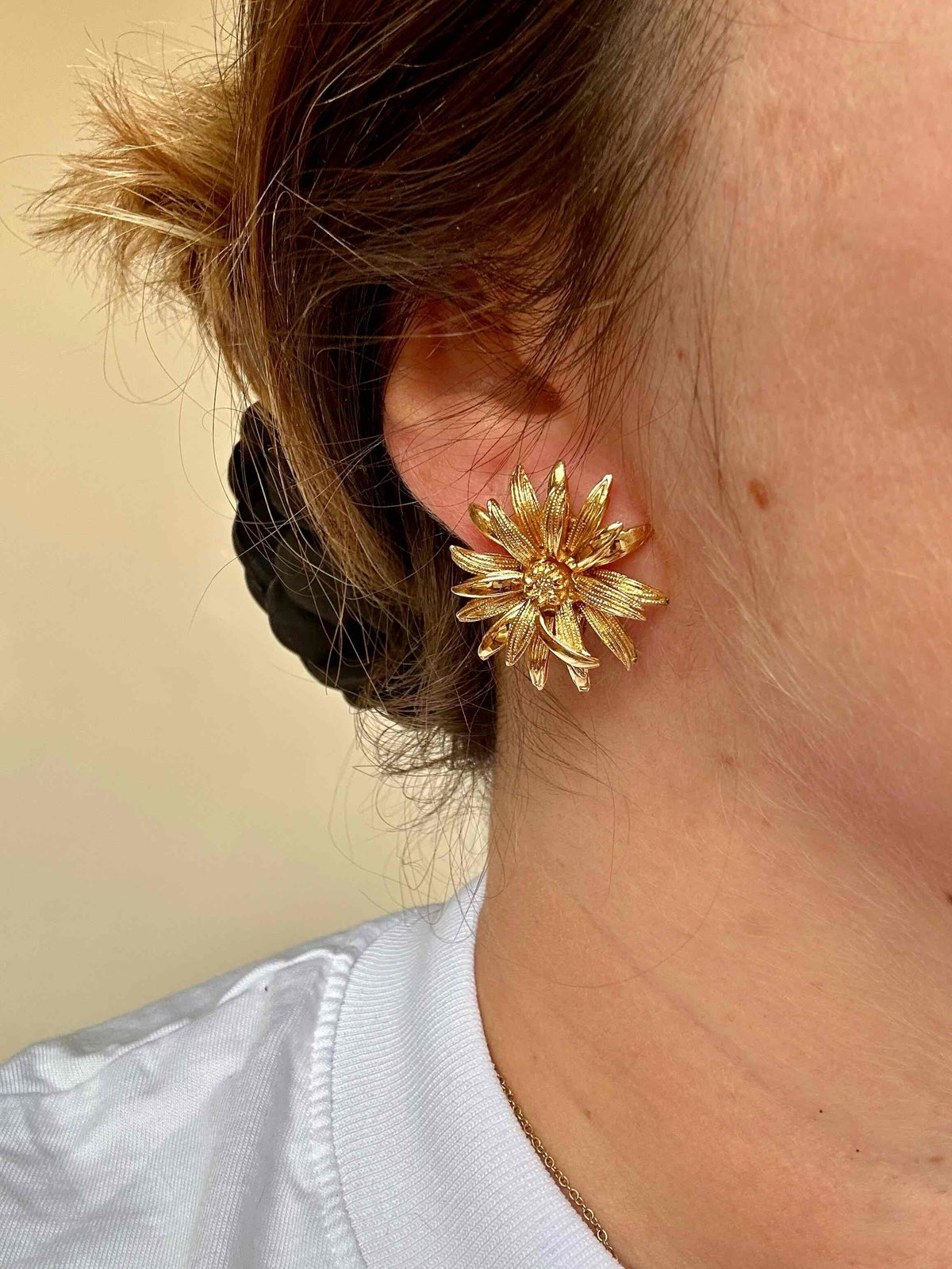 Unit price perClip-on flower earrings, gold-plated brass in the shape of daisy flowers, made in France, 1980s, length 3cm x width 3cm.