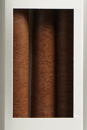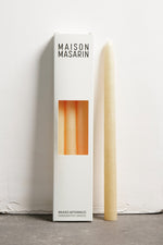 They are made using the "dip method," a technique dating back to the 15th century. This technique creates tapered candles, thinner at the top. Each candle is the result of meticulous work, offering a unique and recognizable handcrafted finish, incomparably brilliant flames, enhanced luminescence, and a longer burn time.