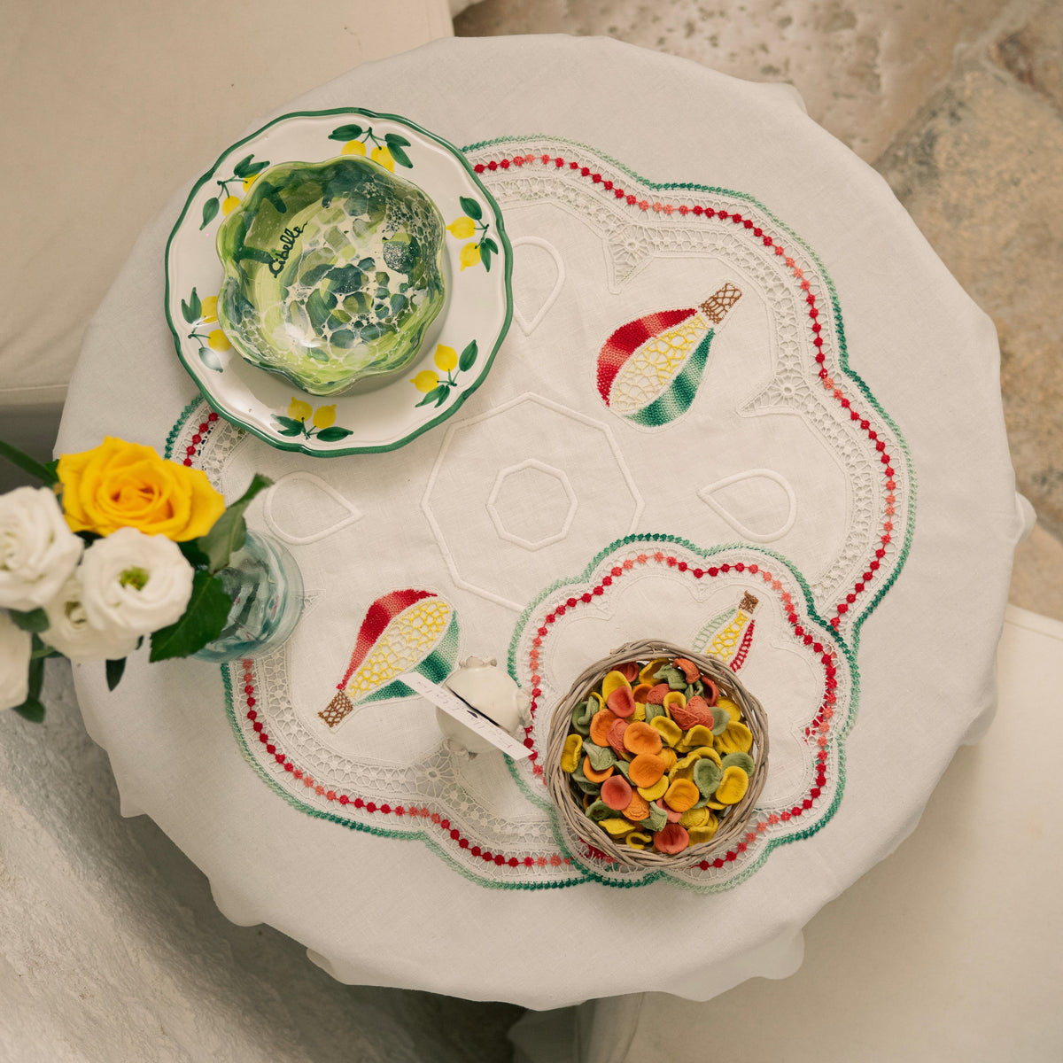 Vi consigliamo di abbinare questo centrino con il nostro sottopiatto Mongolfiera.