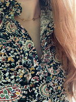 This elegant and timeless shirt is crafted from a fluid cotton fabric with a multicolored paisley print on a black background. Its slightly fitted cut flatters the figure while remaining comfortable. The delicate gathers at the shoulders add volume and a subtle feminine touch. Easy to wear with both corduroy trousers and jeans, this shirt is a versatile piece in any woman's wardrobe. An ideal choice to brighten up your everyday outfits with a chic and refined touch. Size L, runs small, fits a small 40. Made in China. Material: 100% cotton. Care: Machine wash at 30°C on a delicate cycle at 800 rpm.