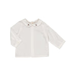 Chemisier à manches longues pour garçon, col Claudine brodé, en twill biologique blanc cassé.