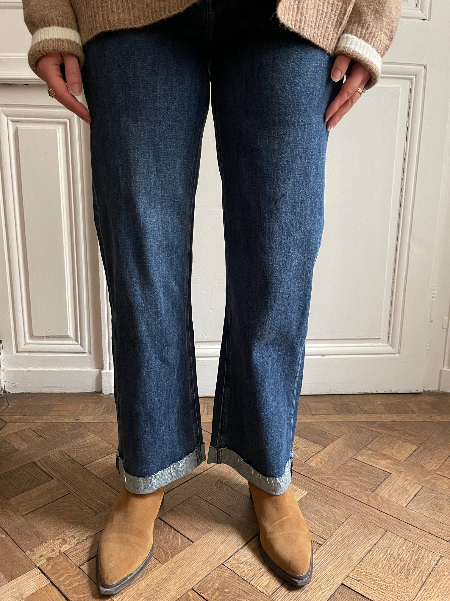 These raw denim straight-leg jeans are the casual-chic piece your wardrobe has been missing. Their straight cut flatters all figures, while the frayed cuff detail adds a trendy, relaxed touch. Made from quality denim, they adapt to all your style needs: wear them with ankle boots for a confident urban look, or with sneakers for a more laid-back vibe. Their timeless raw color makes them easy to style, from an oversized sweater to an elegant blouse. A wardrobe essential reinvented with a fashionable twist that makes all the difference. Sizes 36 and 38. Made in China. Material: 99% cotton and 1% elastane. Care: Machine wash at 30°C on a delicate cycle at 800 rpm.