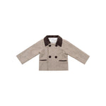 Veste unisex en chevron laine chataîgne avec son col et ses poches passepoilées en velours lisse marron.