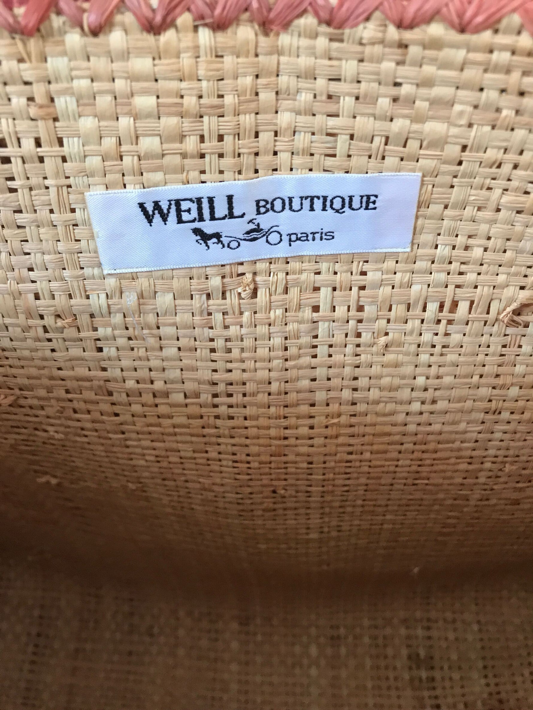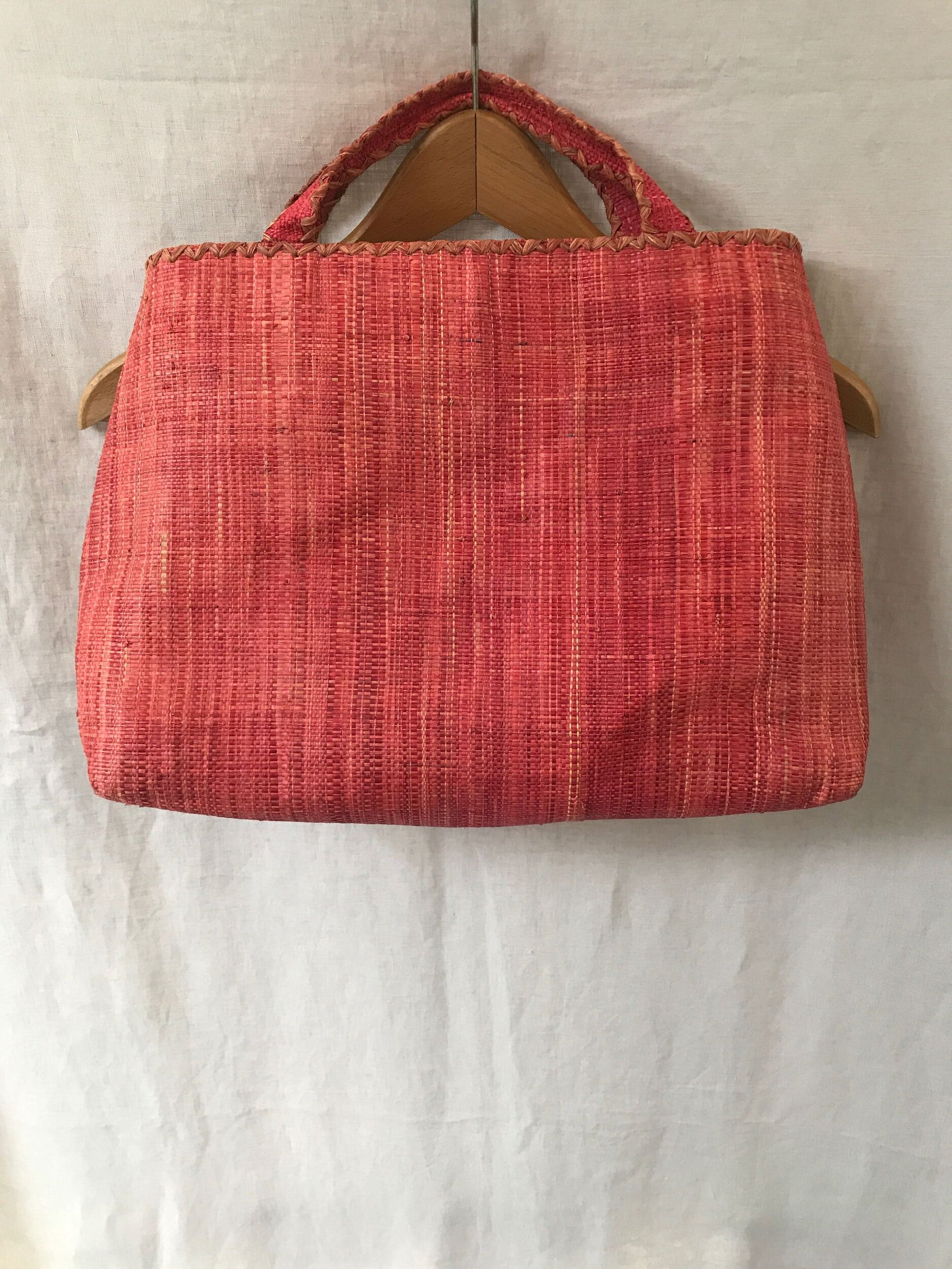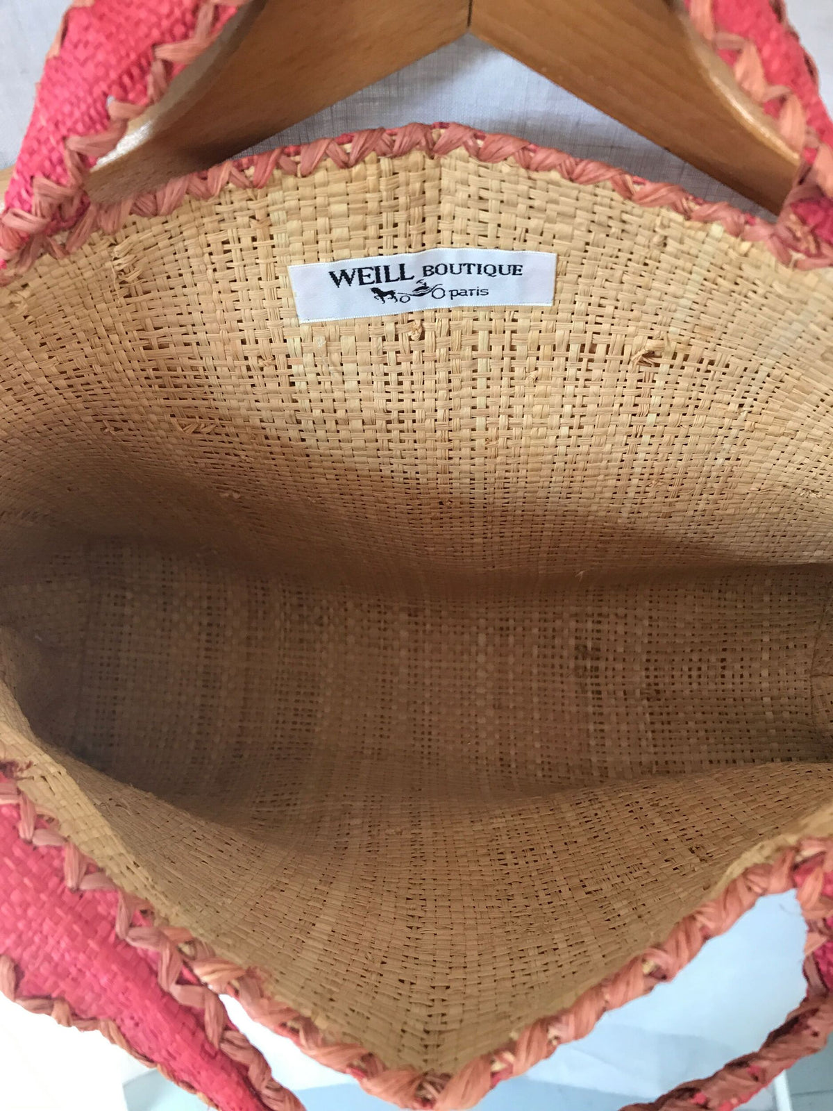 Unit price perWeill basket, woven in pink straw, beige interior.